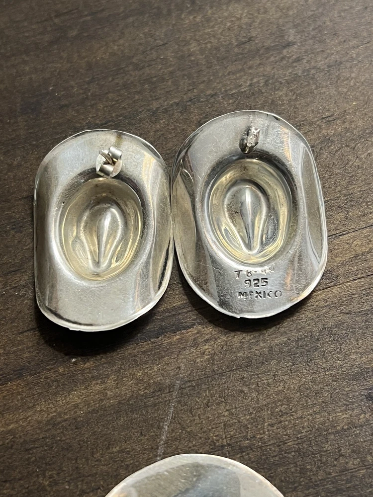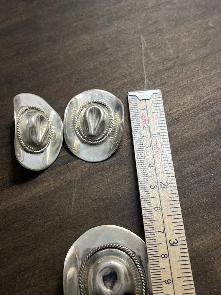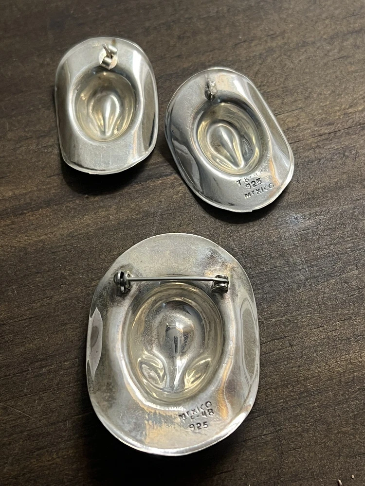 Vintage Cowboy Hat Earrings And Brooch Made In Mexico Sterling Silver