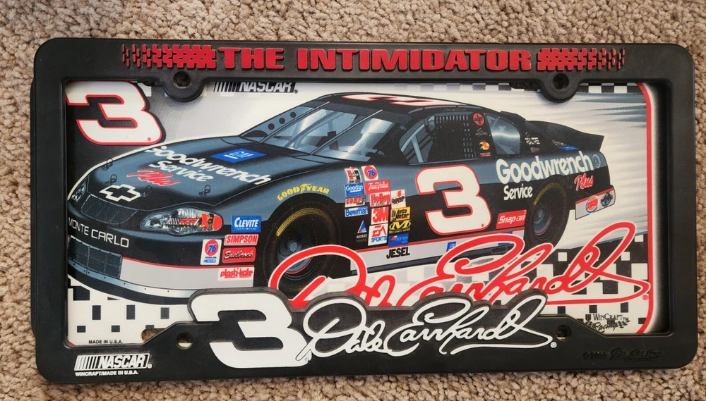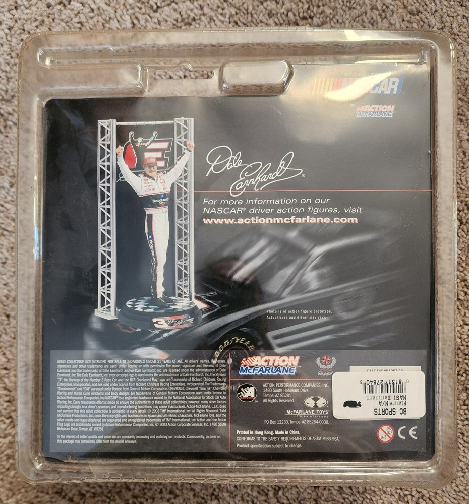 For all the NASCAR fans out there, this lot of Dale Earnhardt memorabilia is a must-have! The collection includes an officially licensed action figure of the legendary driver, along with other exclusive fan apparel and souvenirs. Show your support for Dale Earnhardt and the NASCAR league with these high-quality products, perfect for any auto racing enthusiast. Whether you're a collector or simply a fan of the sport, this lot is sure to impress. Action figure, photo book, license plate and frame, Steering Wheel Keychain. New in original packaging