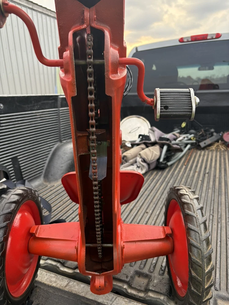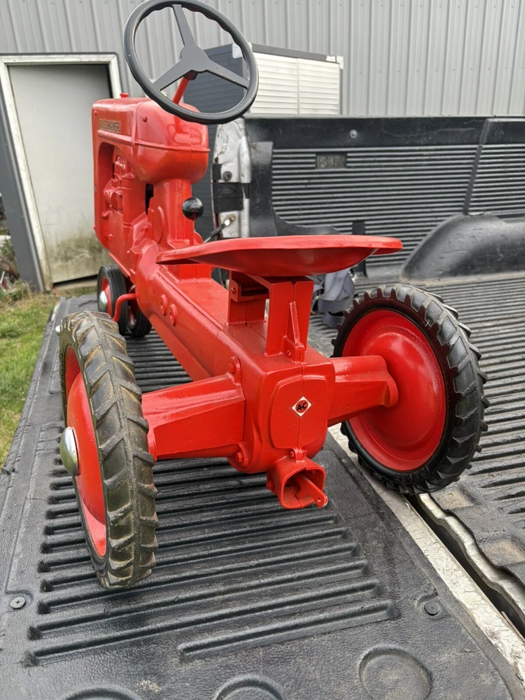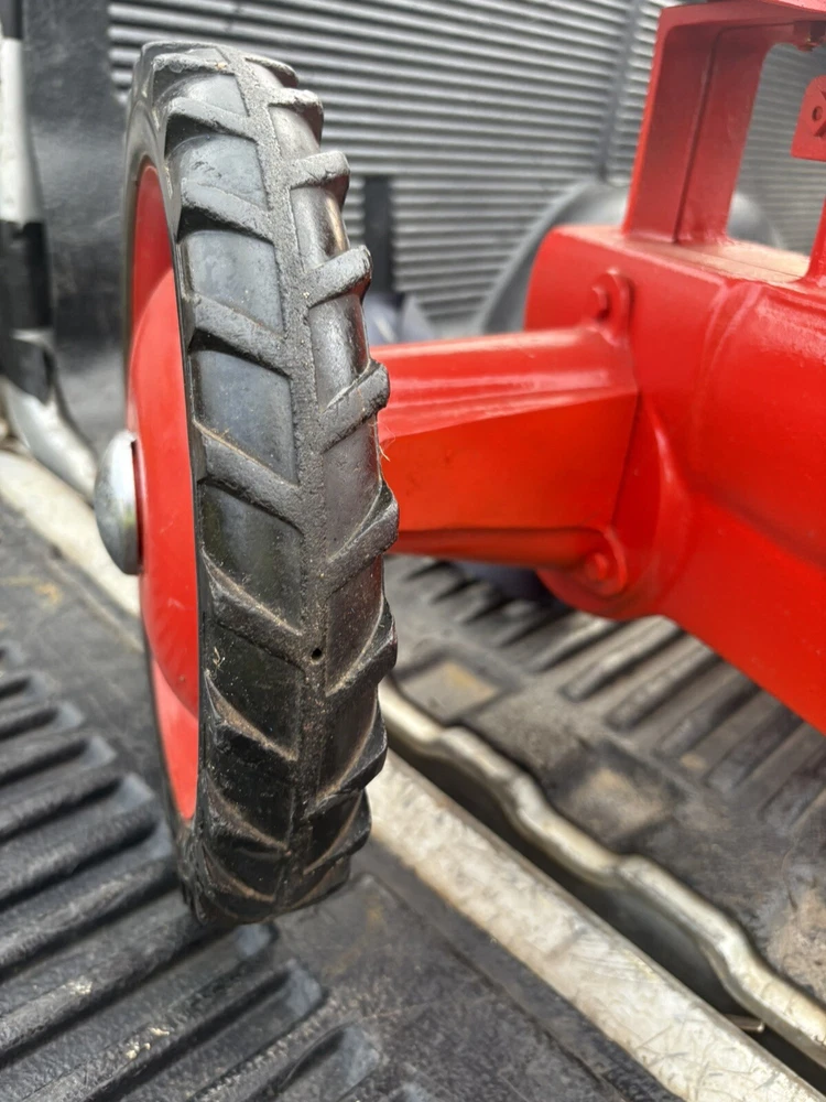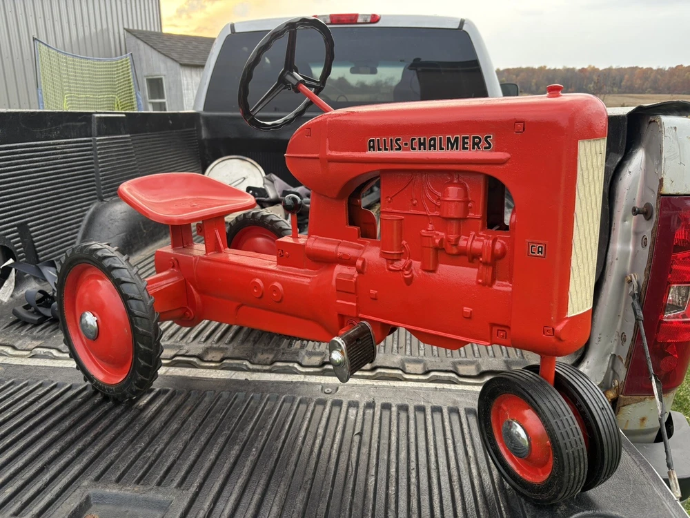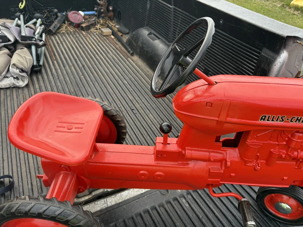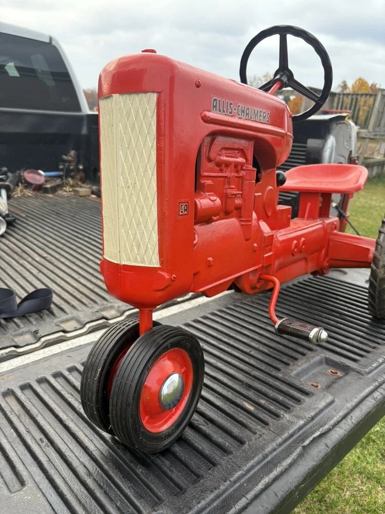 Nice vintage Eska allis chalmers pedal tractor Please use the pictures to make your own judgments as I haven’t owned it long came from an estate. To me it looks as the pedals and wheels are original and shovel old wear. It’s been repainted and has scuffs scratches etc. the chain and chain noise maker look new as do the silver hub cap. I have little experience so outside of those I don’t know what’s orig or new It’s labeled a CA by whoever repainted it but I don’t know the differences ITS SOLD AS IS NO RETURNS. Local pickup preferred but will ship