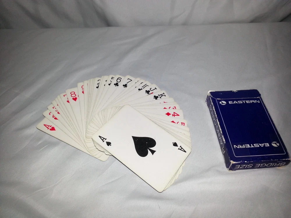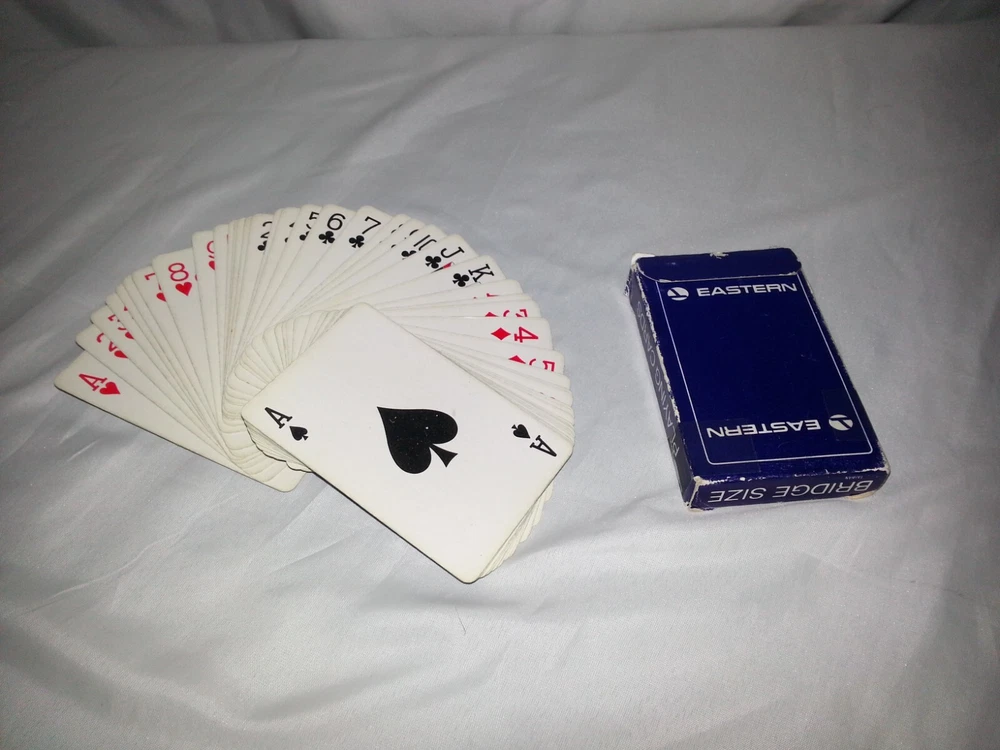 Delve into a piece of aviation history with these Vintage Eastern Airlines Bridge Size Playing Cards. A collector's delight, these cards have been preserved in their original form, unmodified and true to their authentic design, paying homage to the iconic Eastern Airlines brand. Perfect for card enthusiasts or aviation memorabilia collectors, these playing cards are a testament to the timeless allure of airline memorabilia. They serve not only as a nostalgic keepsake but also as a unique addition to any collection of transportation artifacts.
