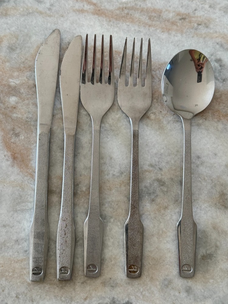 I usually ship next business day! I also offer a combined shipping discount, if you purchase more than one item, you must purchase first, then once I pack and print out the label, I will issue you a partial refund for the difference. This vintage 5-piece cutlery set is a must-have for any aviation enthusiast or collector. The silverware is made of high-quality stainless steel and features the iconic Eastern Airlines logo. The set includes a mix of different types of cutlery, all of which were manufactured in Japan. Perfect for use at home or on the go, this set is a great addition to any collection of airline memorabilia. Whether you're a fan of United Airlines or simply appreciate the history of aviation, this cutlery set is sure to impress. So why wait? Add this unique piece to your collection today! lot includes: 2 knives 1 soup spoon 2 fork