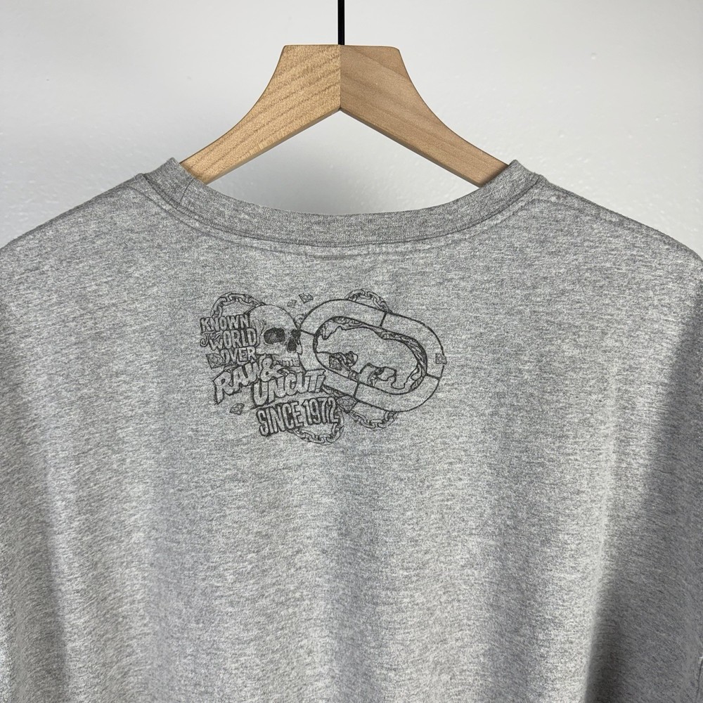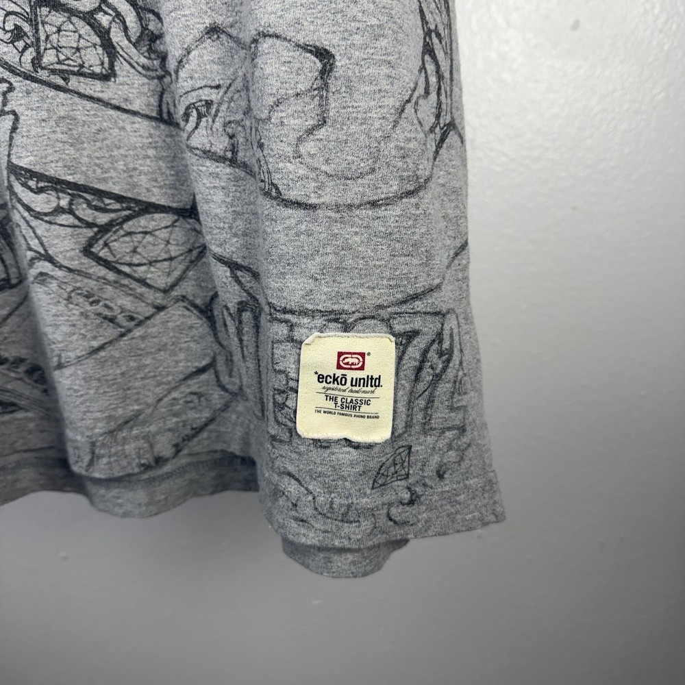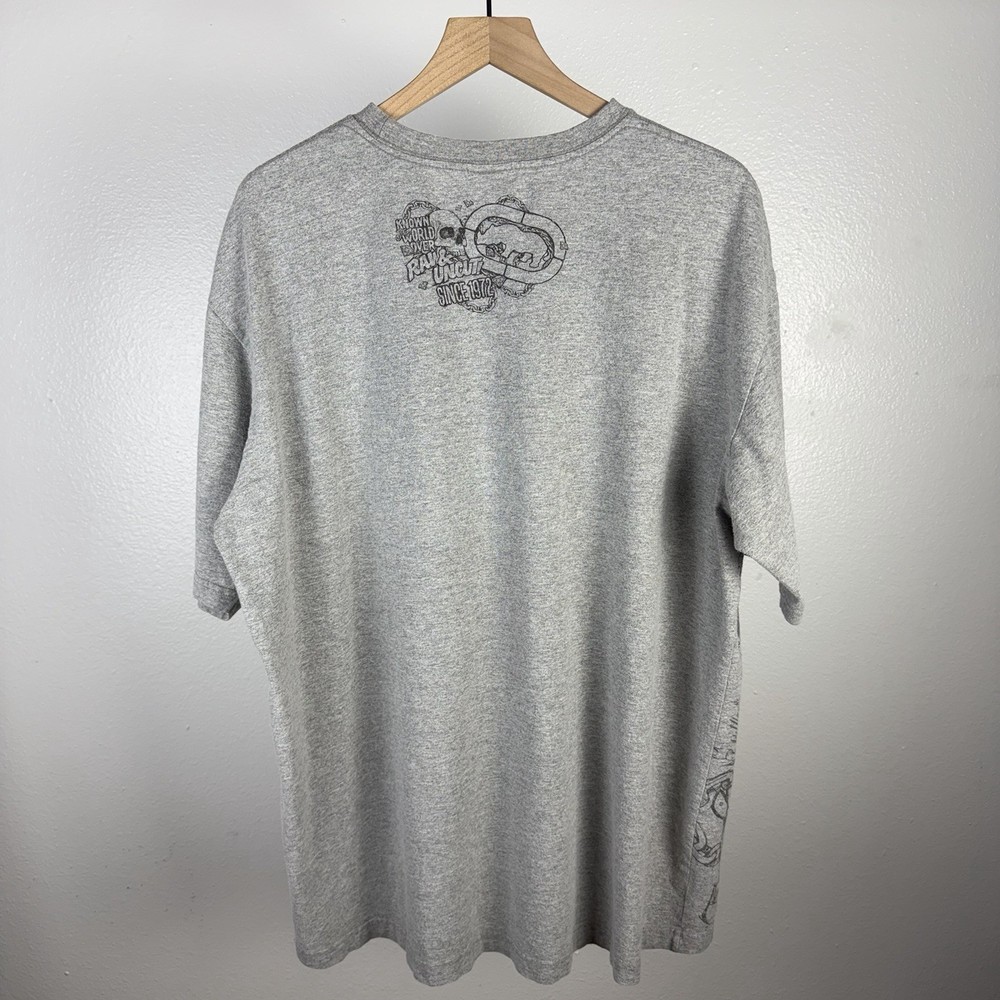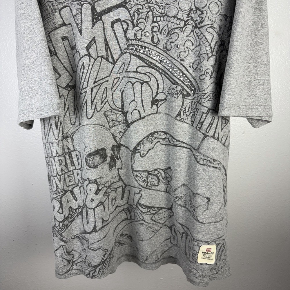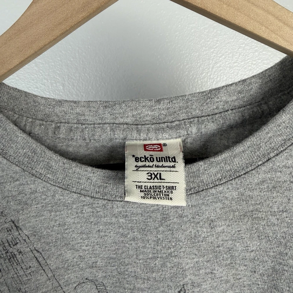 Vintage Ecko Unlimited Unltd AOP Big Logo Double Sided Y2K Gray T Shirt Size 3XL