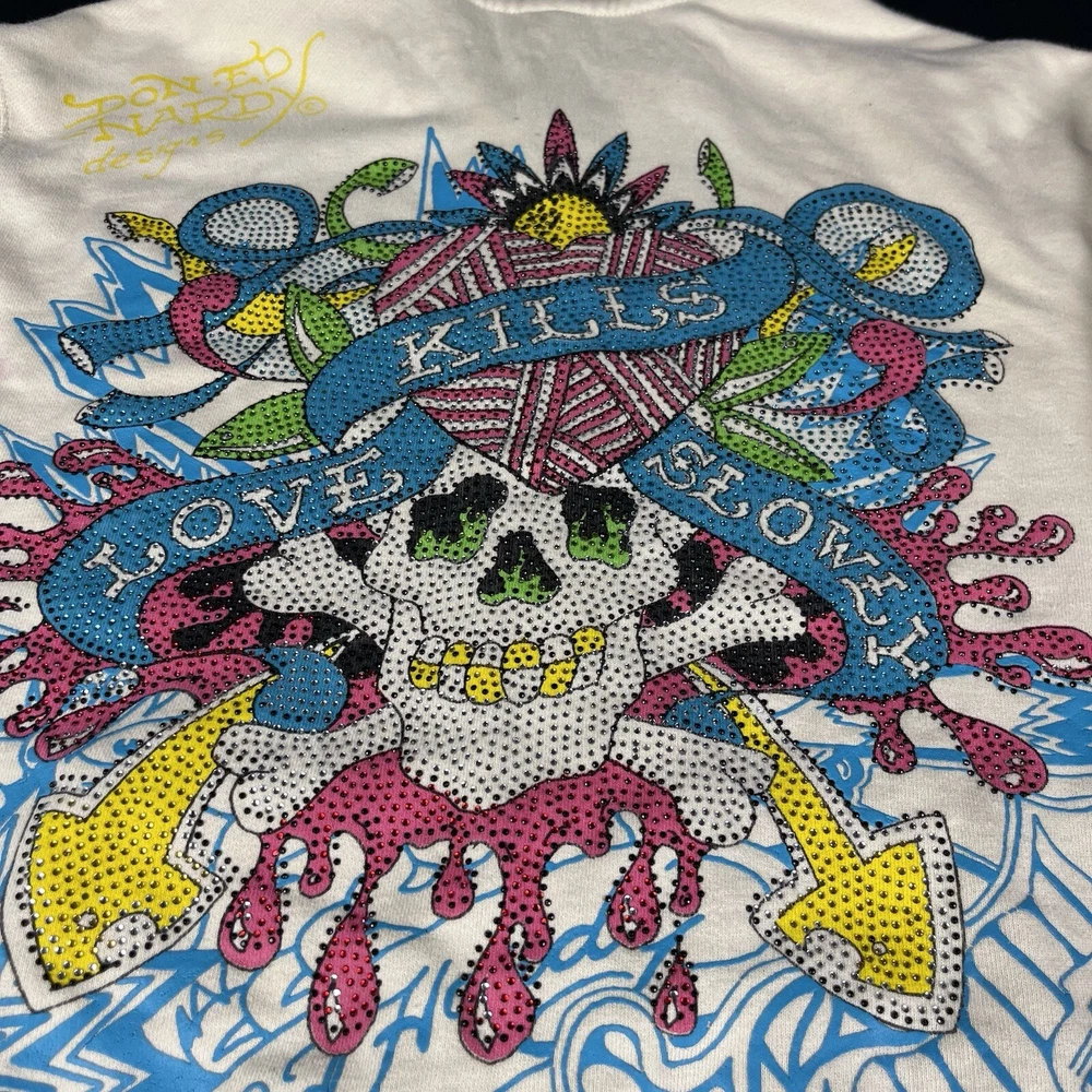 Vintage Ed Hardy Christian Audigier Hoodie L 'Love Kills Slowly' Y2k Rhinestones Haus of Vintage has rare vintage, Lululemon, Nike, and much more! Visit my shop to find the best prices on the block! https://www.ebay.com/str/hausofvintage *Will ship out in 1-business day, via FIRST CLASS MAIL (if applicable) or PRIORITY MAIL ~ OPEN TO REASONABLE OFFERS AND WILLING TO NEGOTIATE. IF THERE ARE MULTIPLE ITEMS IN MY STORE THAT YOU WISH TO PURCHASE THEN PLEASE LET ME KNOW AND I?LL BE MORE THAN WILLING TO NEGOTIATE A DEAL WITH YOU. HAPPY SHOPPING~ ~ALL MERCHANDISE MUST BE IN THE SAME CONDITION AS IT WAS SENT OUT. ALL RETURNS WILL BE INSPECTED PRIOR TO REFUND OF YOUR FUNDS