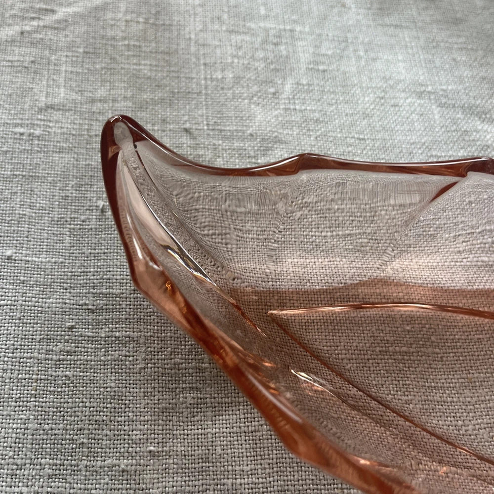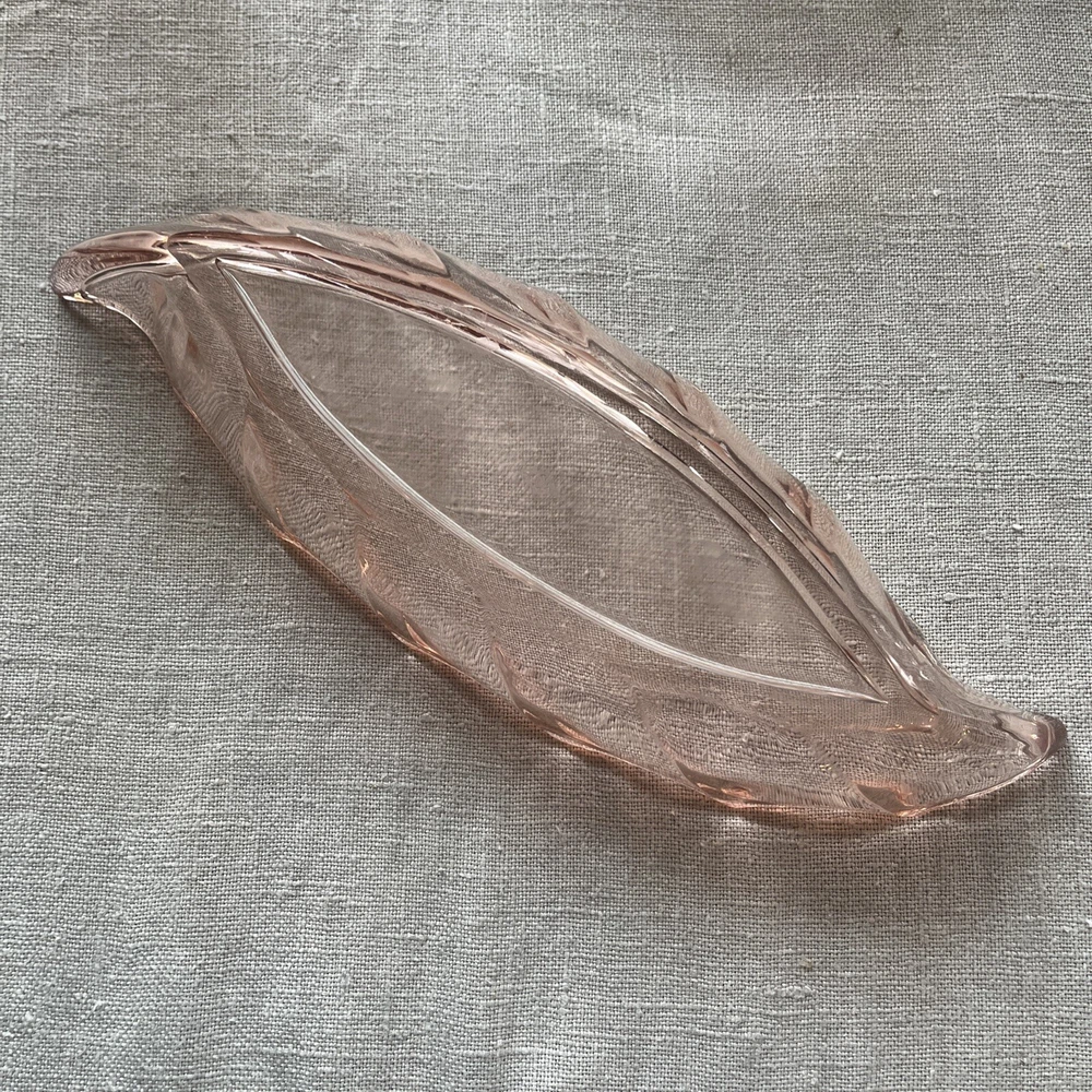 Vintage Elegant Heisey Twist Pink Depression Glass Leaf Shaped Relish Candy Dish Excellent Condition! Please see all pics for details! No cracks or chips found. Note: I do my best to package my fragile items with care. Unfortunately after I send them off I’m trusting to be delivered as sent. In the unlikely event there should be an issue in the shipping please contact your Postal Service to file a claim. Thanks!