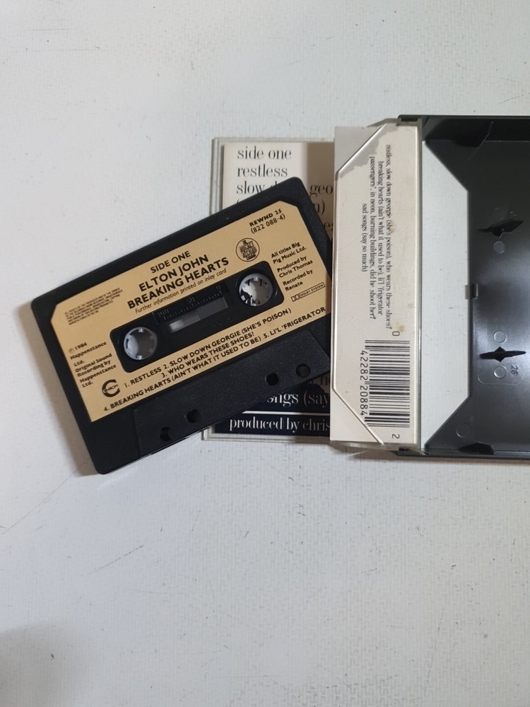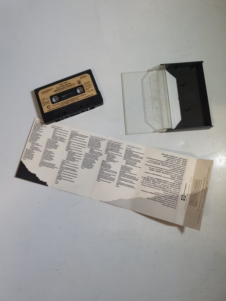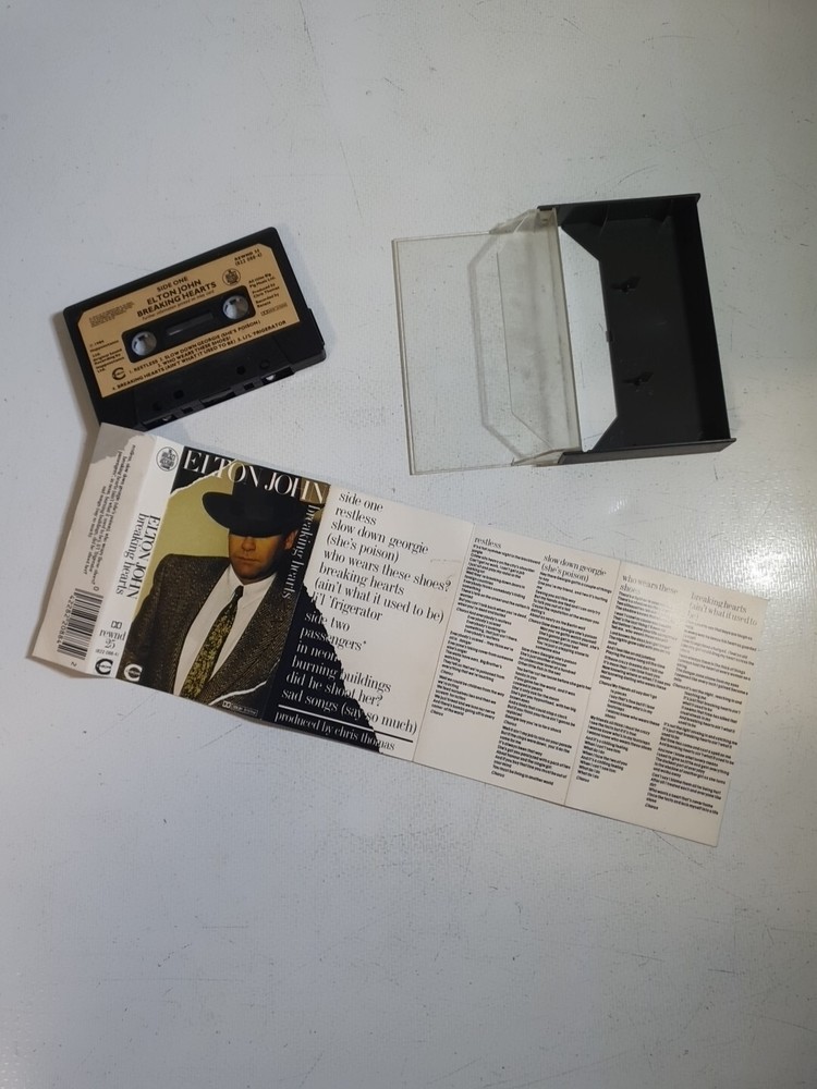 This vintage cassette tape features the iconic Elton John's "Breaking Hearts" album, released in 1984 under Phonogram Records. The cassette comes in a standard jewel case and includes the original inner sleeve. The multicoloured album is a first edition and features singer-songwriter and pop rock genres from the 1980s era. The cassette is a great addition to any music collection and is perfect for any occasion. The inlay and case conditions are good (G), and the cassette format makes it easy to play and enjoy the music. This item is a must-have for any Elton John fan or pop music enthusiast.