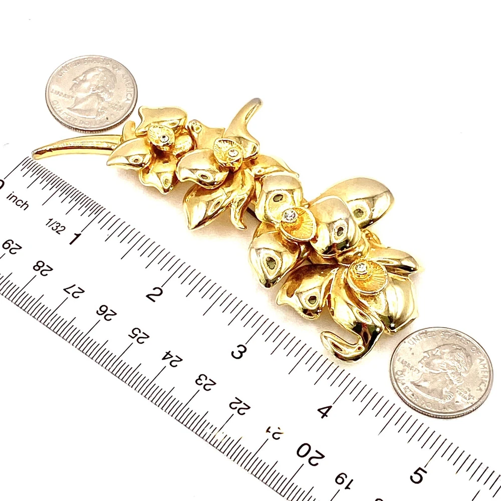 This vintage Estate brooch is a stunning piece of jewelry that will make a statement in any collection. The intricate design features delicate flowers and lilies, with sparkling crystals that catch the light beautifully. Measuring at 4 inches in length, this brooch is perfect for any occasion, whether it be a special event like a wedding or graduation, or an everyday accessory. The piece is made of gold-tone metal and has a beautiful brilliance cut to the crystals. The brooch is eye-clean and has excellent cut grade. The Estate brooch is a perfect addition to any fashion jewelry collection and is sure to impress. This brooch is in excellent condition! This is a pre-owned piece. It may cleaning. There may be scratching, chips, normal weavr, missing stones, etc… See Photos. If you have any questions, please feel free to contact me via eBay messaging. Thank you for stopping by. Make sure to check out other items in my store. Your satisfaction is my priority! Have a wonderfully blessed day!. Your satisfaction is my priority! Have a wonderfully blessed day!