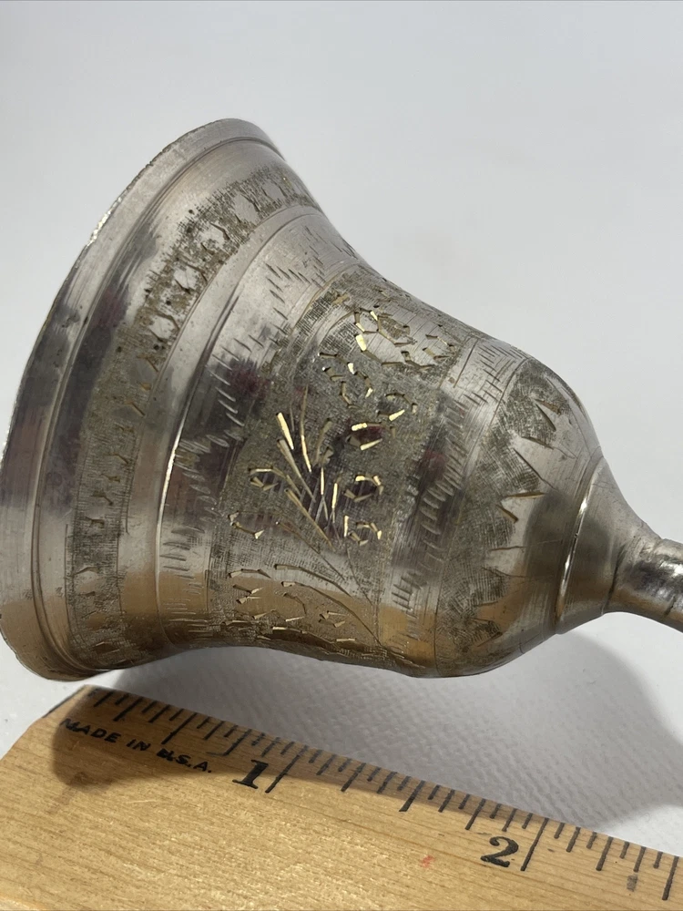 Vintage Etched Bell Candle Holder Silver Brass India? 3.75" Tall Boho Hippie