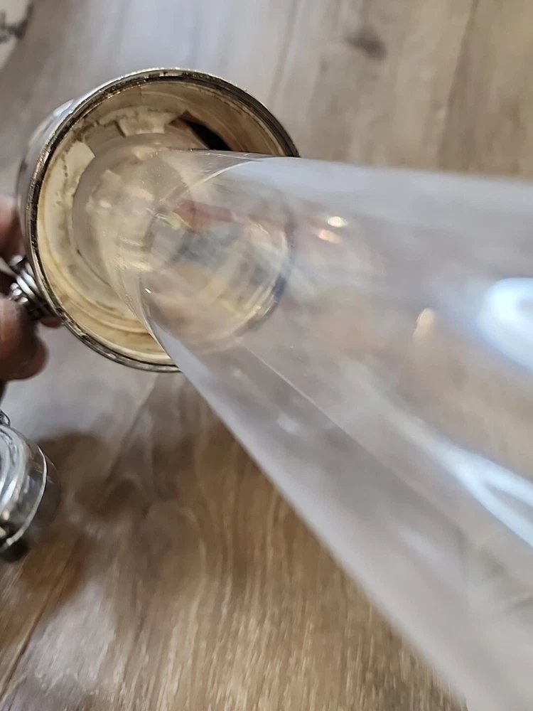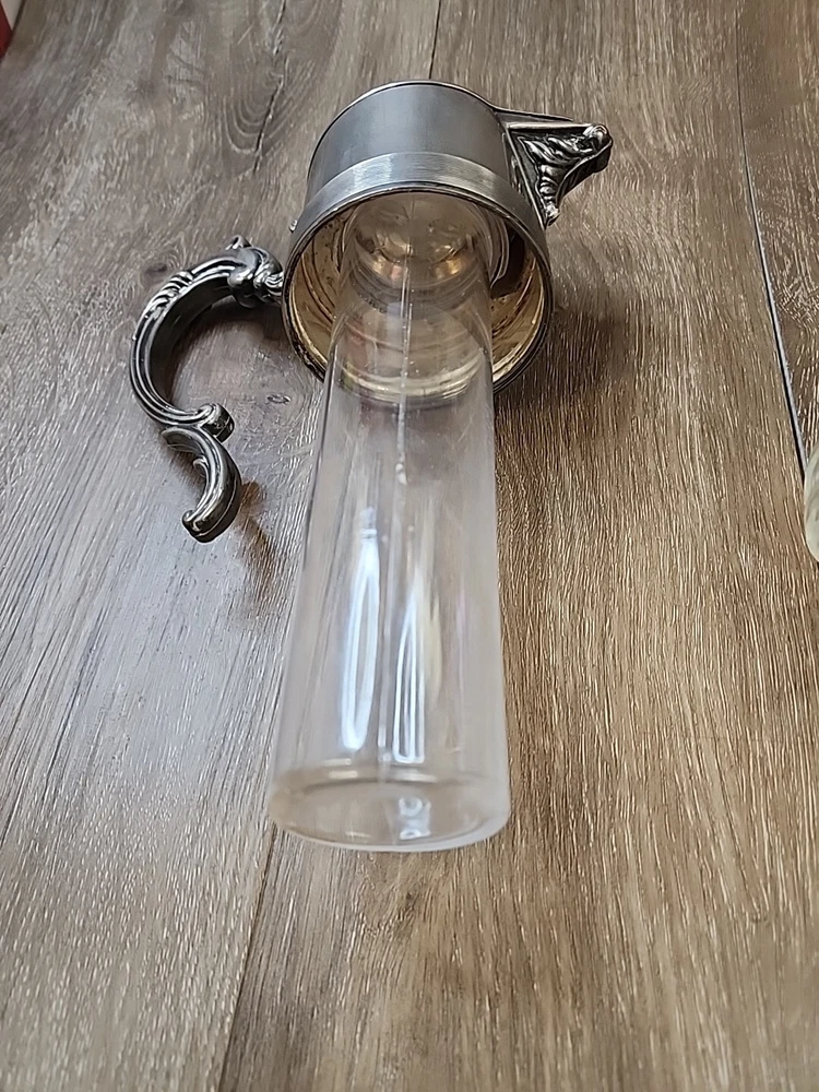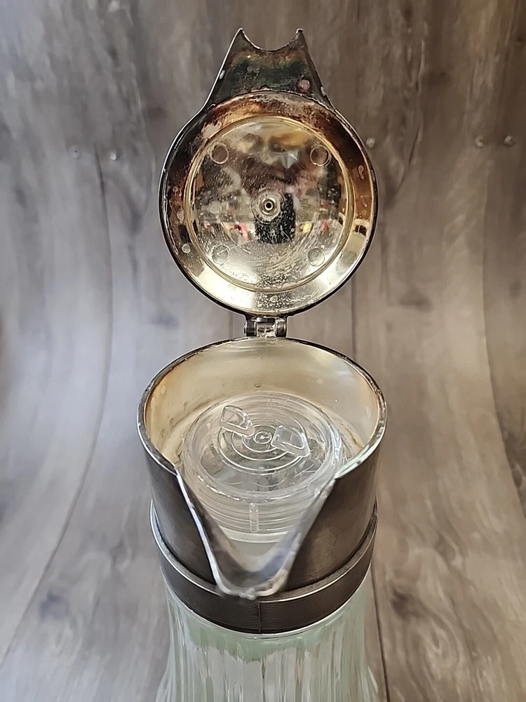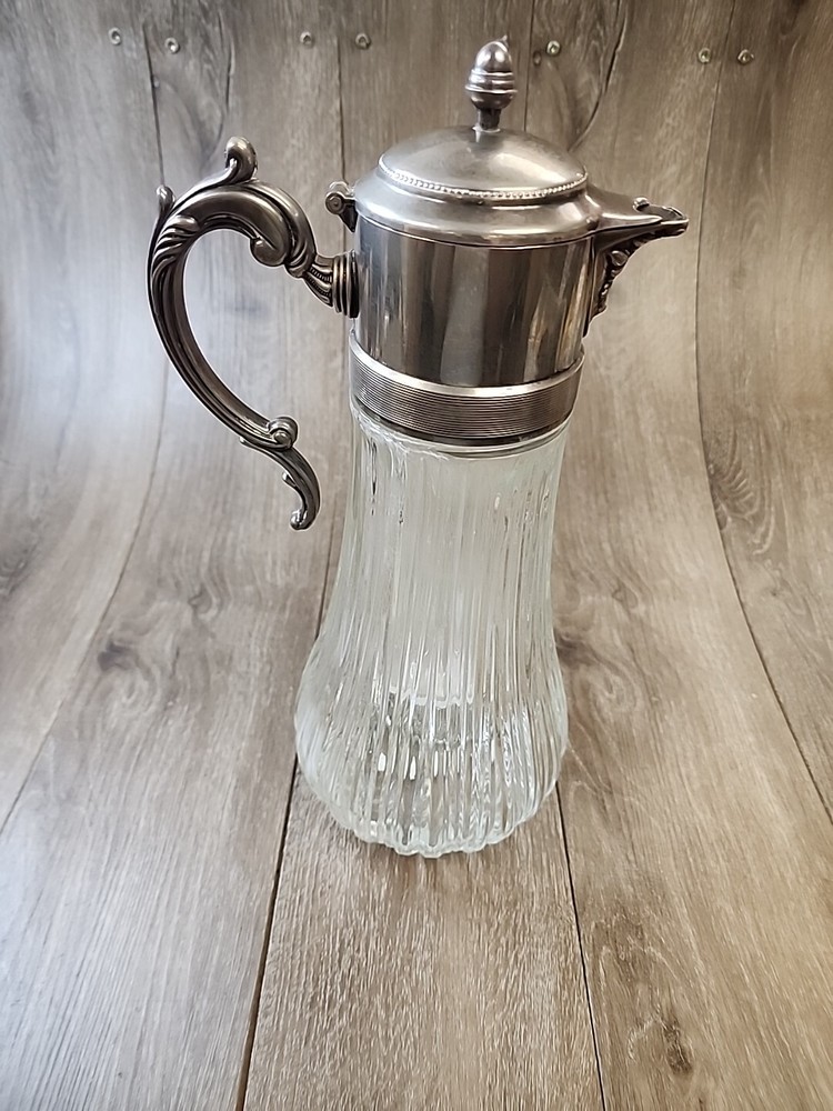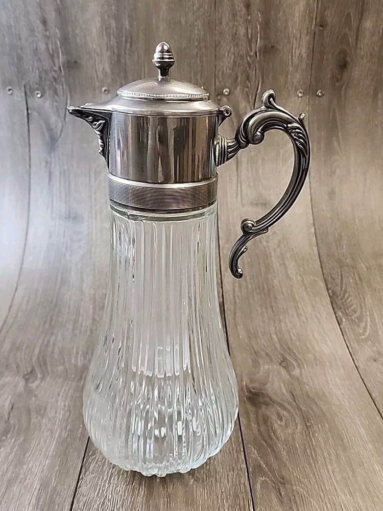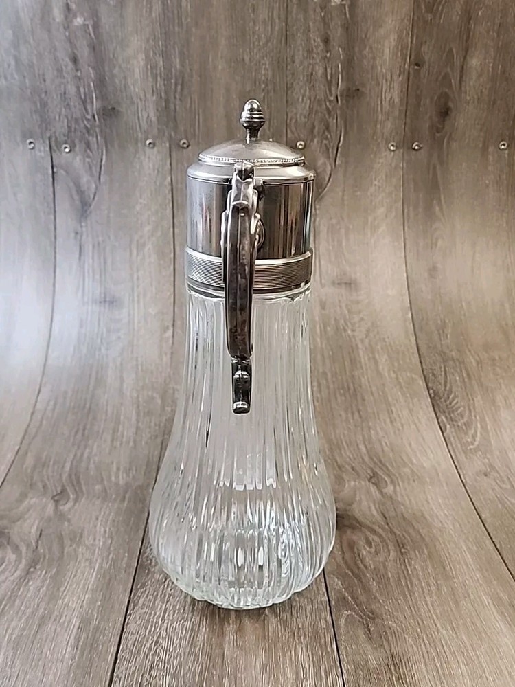 This vintage F.B. Rogers Italy glass and silverplate beverage carafe with ice container is a stunning piece that will add a touch of elegance to any bar or collection. The art deco style and silver color make it a perfect addition for all occasions. Crafted with high-quality materials, this decanter is 14 inches tall and has a width of 6 inches. It weighs 4lb 15oz and features an ice container, making it a unique and practical piece. The F.B. Rogers Silver Company Italy created this original decanter between 1920-1949, and it is a must-have for any collector or lover of vintage barware.