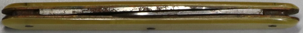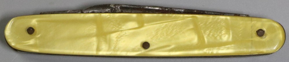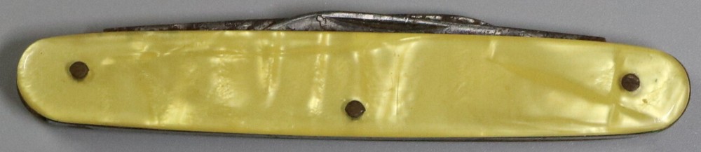 Vintage Fairmount Cutlery 2 blade pocket knife. Made in USA. Celluloid handle face. Length Approx: 3 1/16" Closed, 6 1/2" Open. Max handle width Approx: 1/2" Blades in need of cleaning.