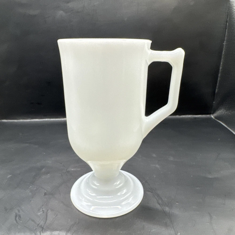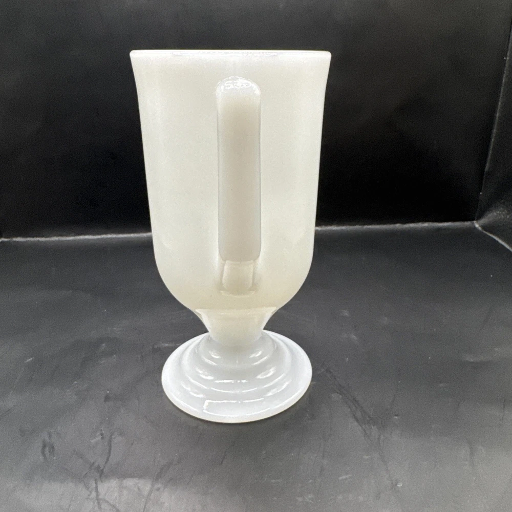 Vintage Footed Pedestal MILK GLASS Solid White Tall CUP Mug Handle Stem 8oz. Condition is Used. Shipped with USPS Ground Advantage.