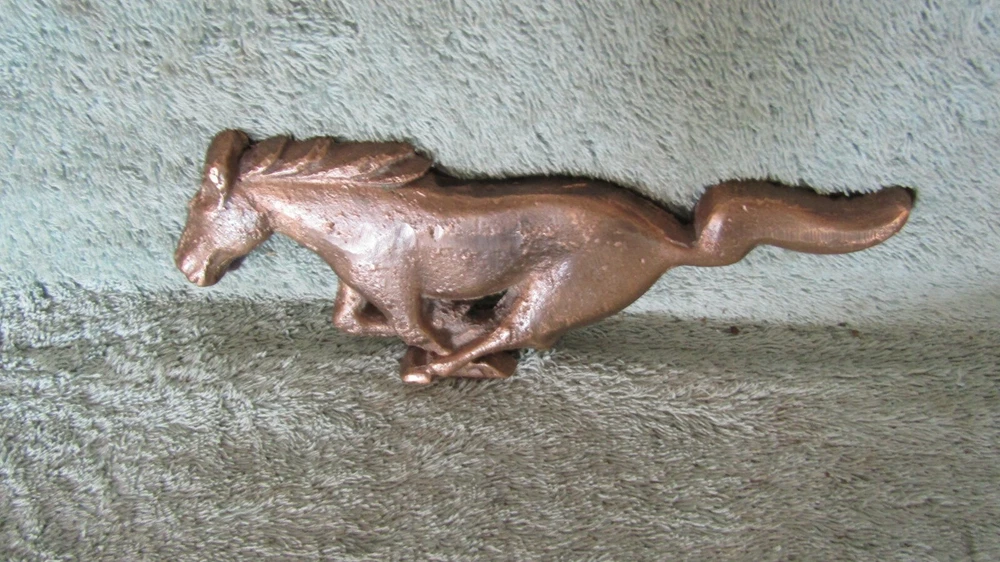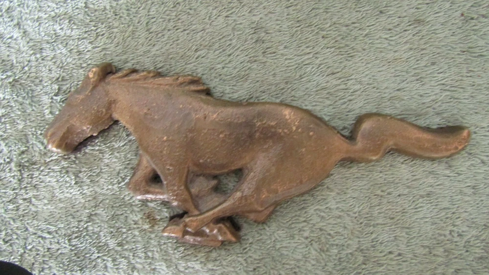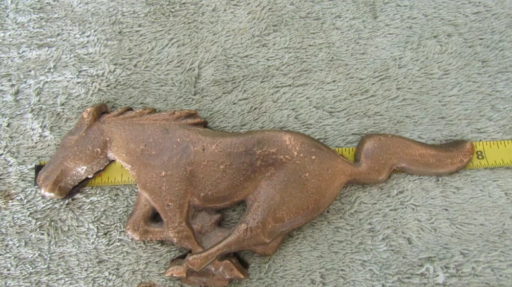 You are bidding on a one of a kind Ford Mustang Solid Brass Paper Weight - It Weighs almost 1 Lb. Great for the Mustang collector - It was cast for my Grandfather from a original Ford Mustang Grill Emblem - It was made in the 1970's - It has Great patina - There is felt on the back - Sold as is thanks for bidding.