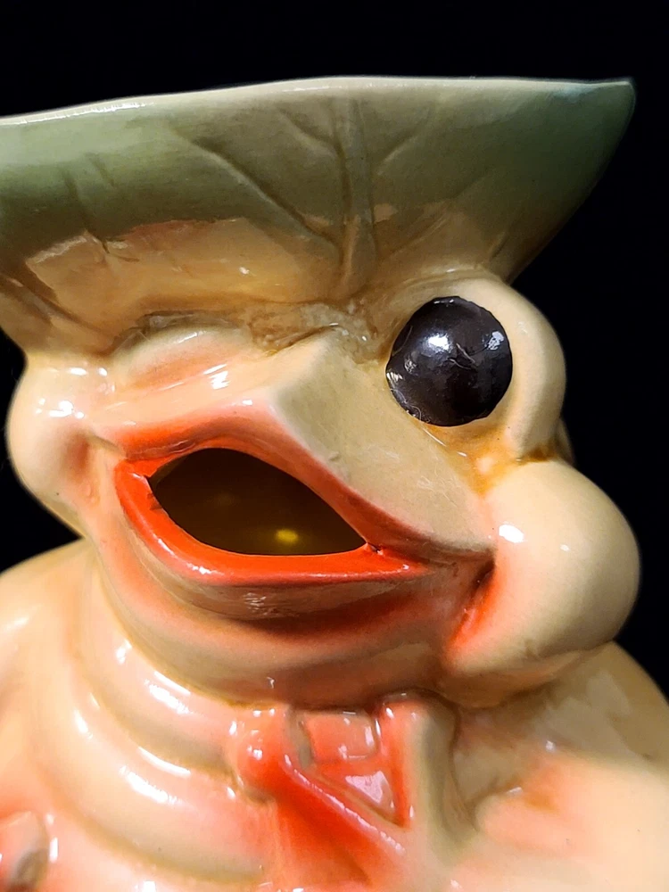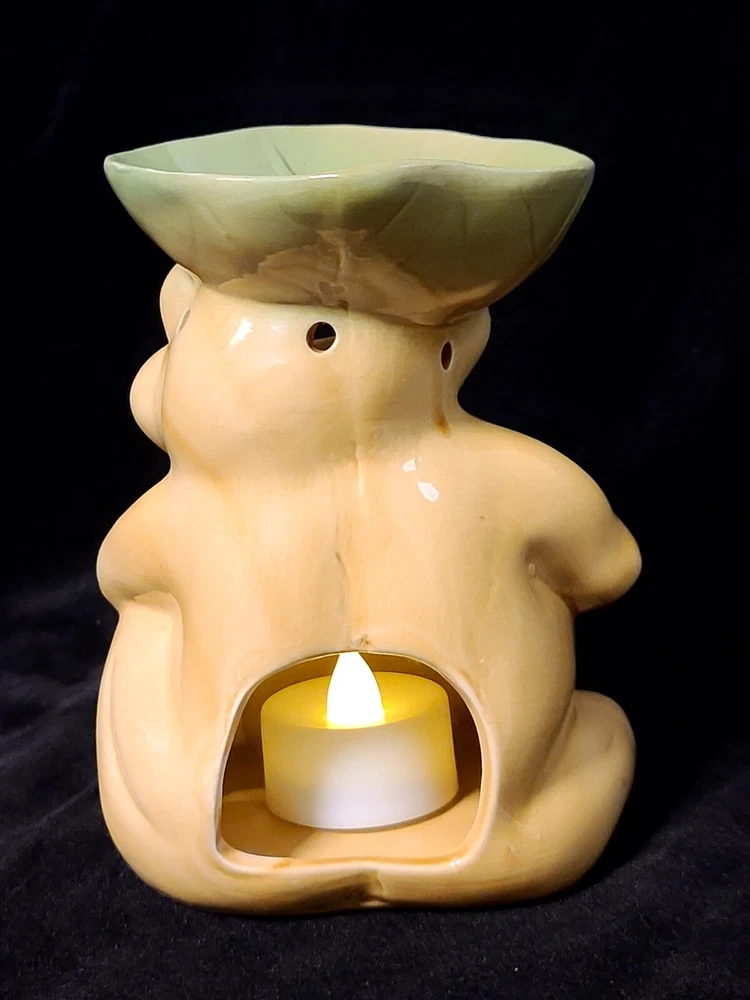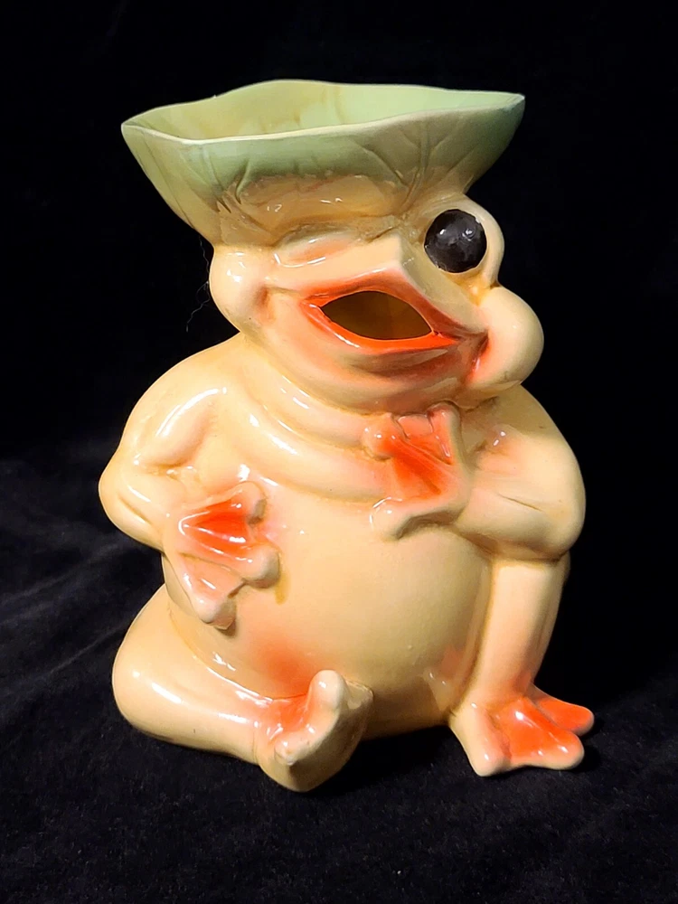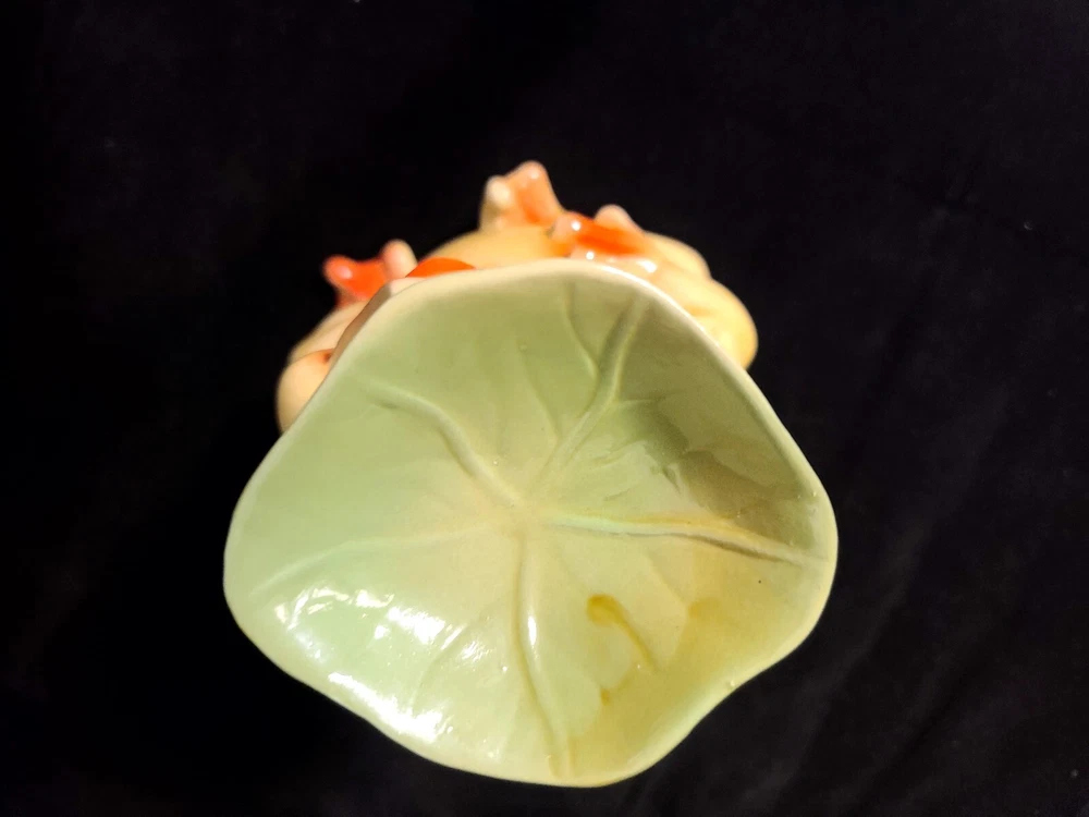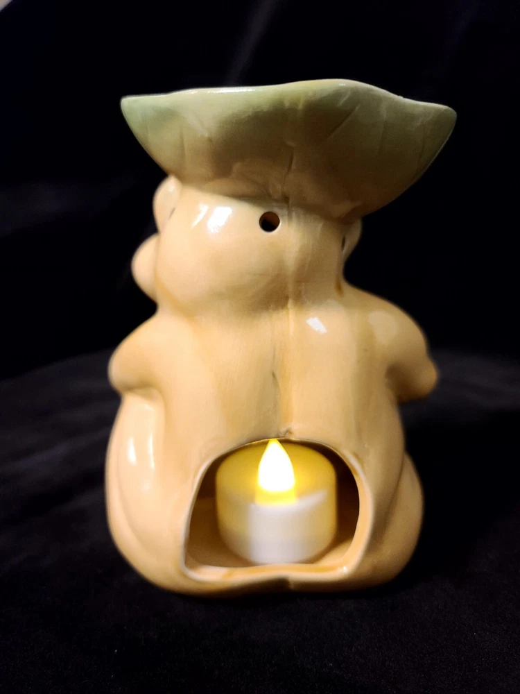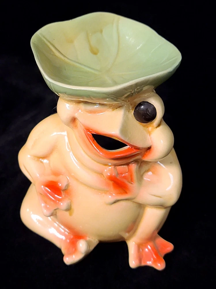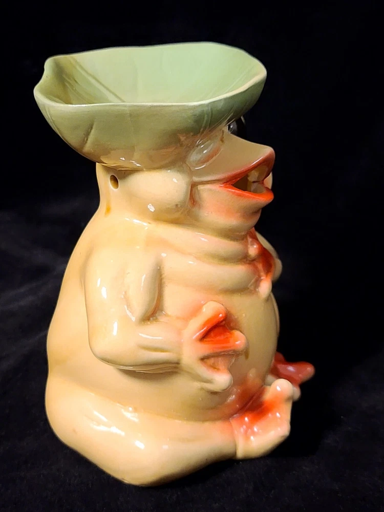 This vintage frog tealight holder is a charming addition to any collection of candle holders. Crafted from ceramic material with a majolica style, it features a delightful frog design that adds a touch of whimsy to any room. Perfect for collectors or those who appreciate unique and decorative items, this candle holder is a must-have. Whether you use it to hold your favorite scented candle or simply display it as a standalone decoration, this vintage frog tealight holder is sure to be a conversation starter.