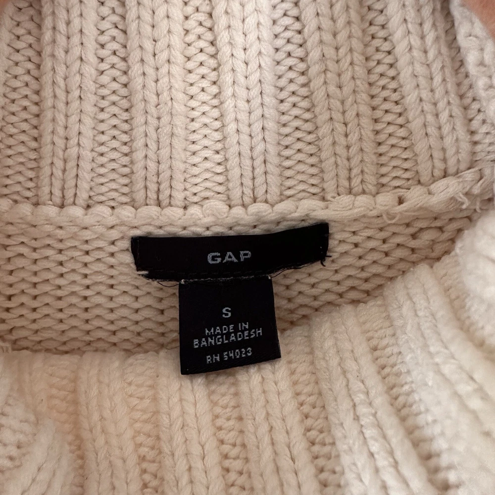 Vintage cream chunky turtleneck sweater. Very classic style, featuring raglan sleeves, chunky ribbed turtleneck, and wide ribbing on the hemline and cuffs. There are two stains on the underside of the right arm. They could probably still be treated out. I just didn’t notice them until after I washed it. Brand is Gap Tagged size S Cotton/Acrylic blend Measurements Pit to pit: 16” Length: 22.5” *model is size S/M, 29”waist, 5’8” tall #vintage #90s #y2k #rorygilmore #sweater knit chunky cozy winter fall cottage cabin prairie Gilmore girls warm basics essential minimalist versatile layers style aesthetic professional business casual