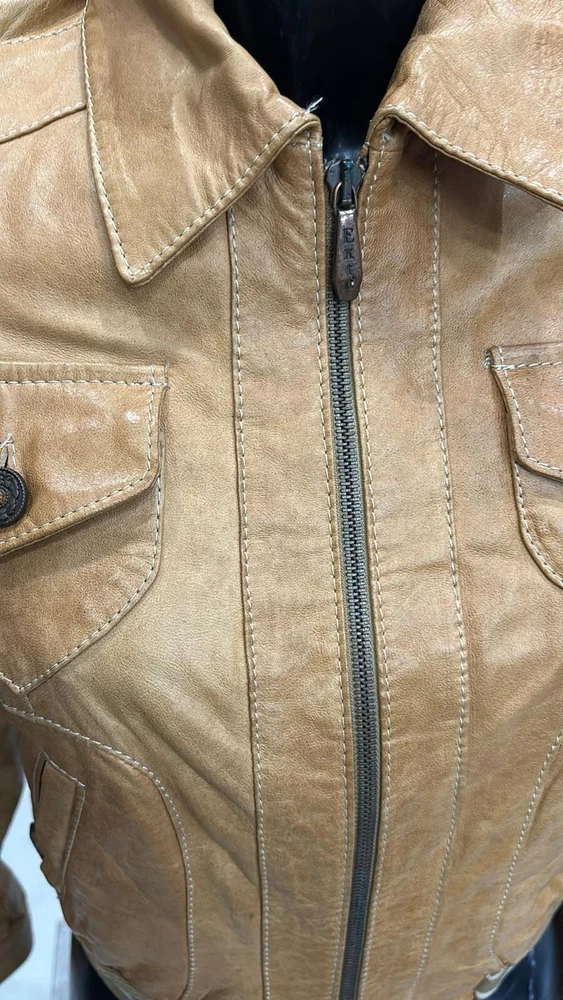 Style:JacketBrand:Exto'Closure:ZipperVintage:YesUPC:Does not applygtin13:Does not applyOuter Shell Material:LeatherDepartment:womanType:JacketSize:44Size Type:RegularColor:CAMEL