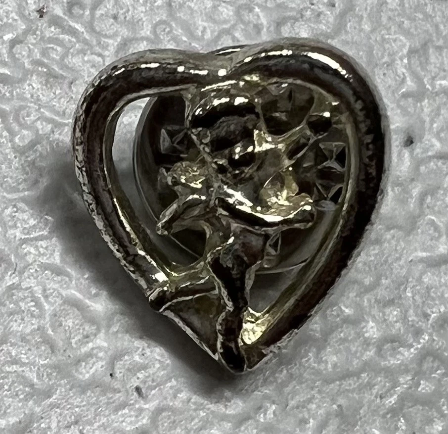 This vintage gold tone lapel hat pin features a beautiful guardian angel design, perfect for collectors or anyone who loves religious-themed items. The country/region of manufacture is unknown, adding to the intrigue of this piece. The pin is not handmade or modified, and has been well cared for. The angel is detailed and intricate, and would make a lovely addition to any collection or outfit. This pin falls under the categories of collectibles, pinbacks, and religious items, making it a unique and special find. Add this vintage gold tone guardian angel lapel hat pin to your collection today.