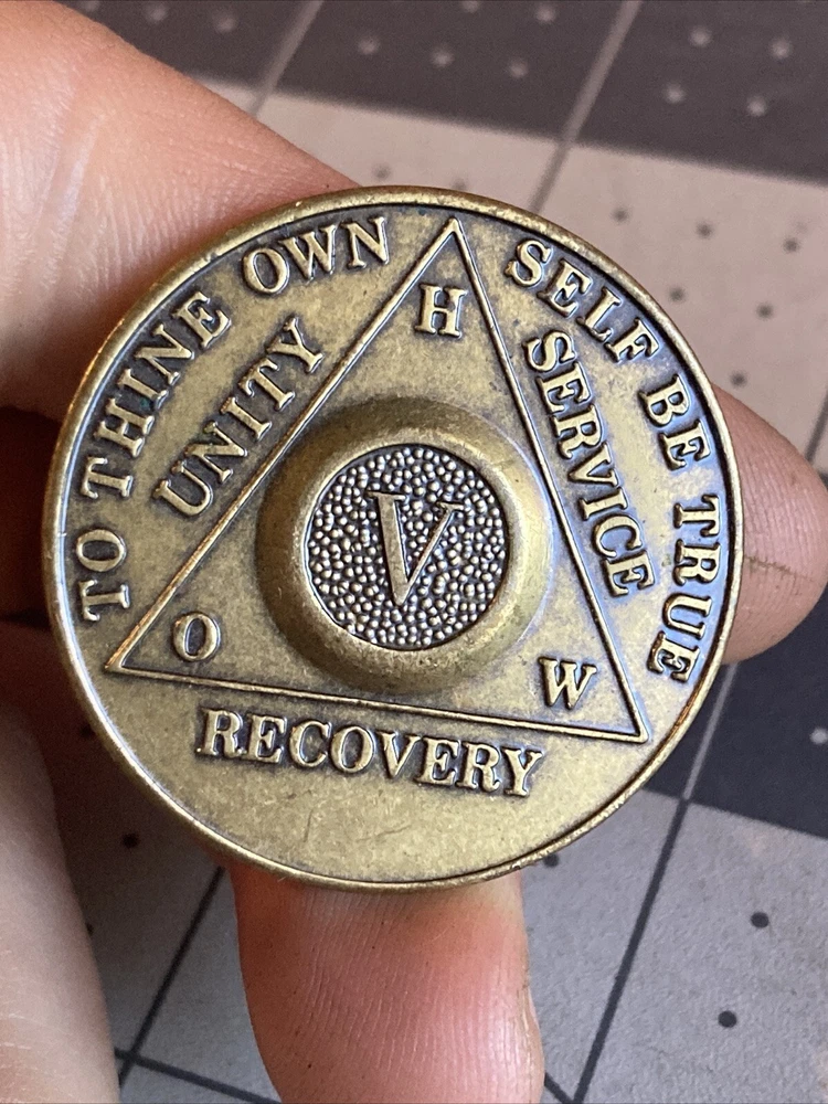 This vintage HOW 5 Years V recovery coin is a unique addition to any collector's inventory. The intricate design showcases the Recovery Programs token and its significance in history. A rare find, this coin is a must-have for any enthusiast of coins and paper money.
