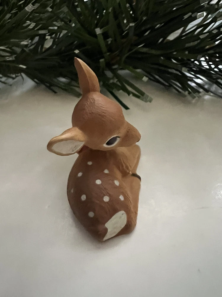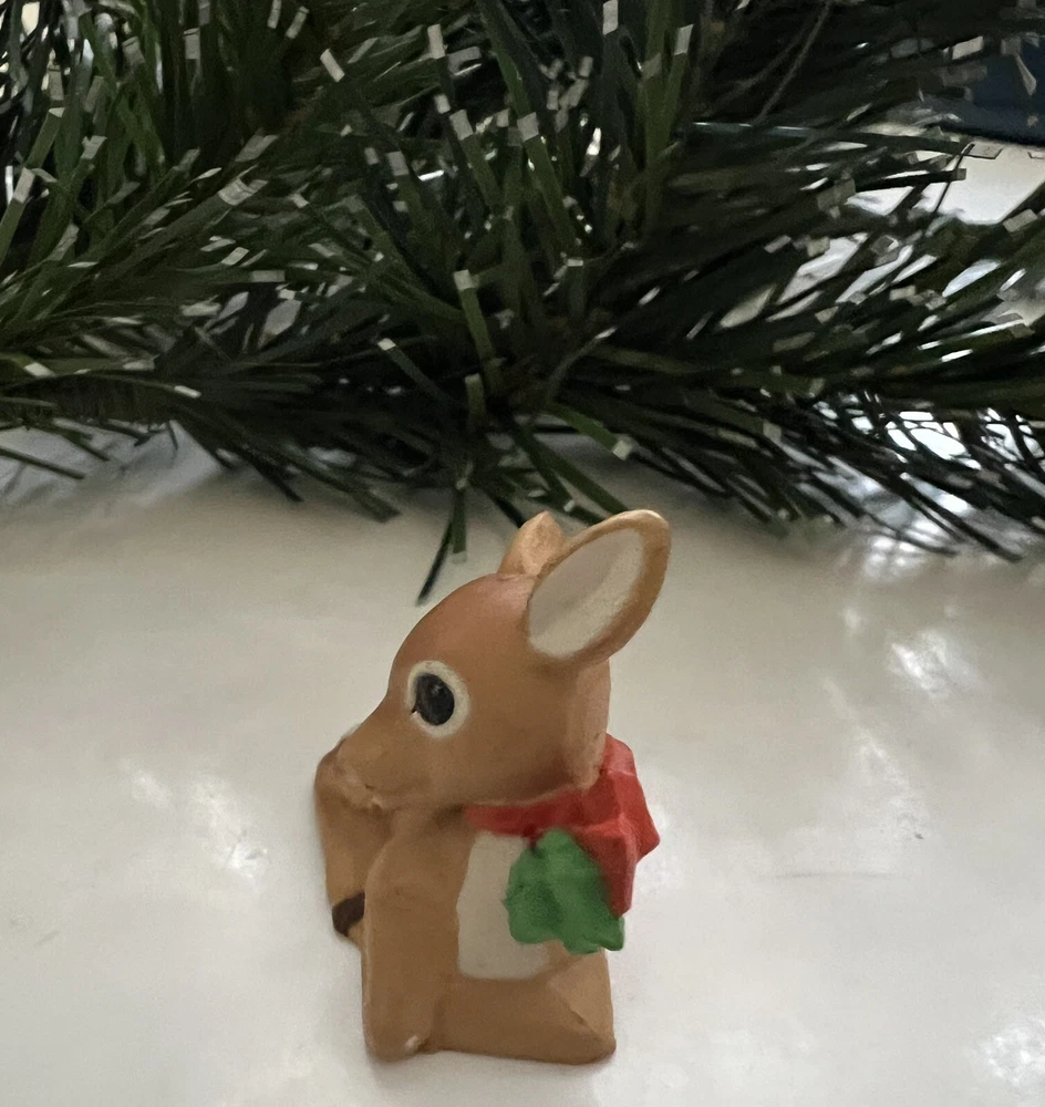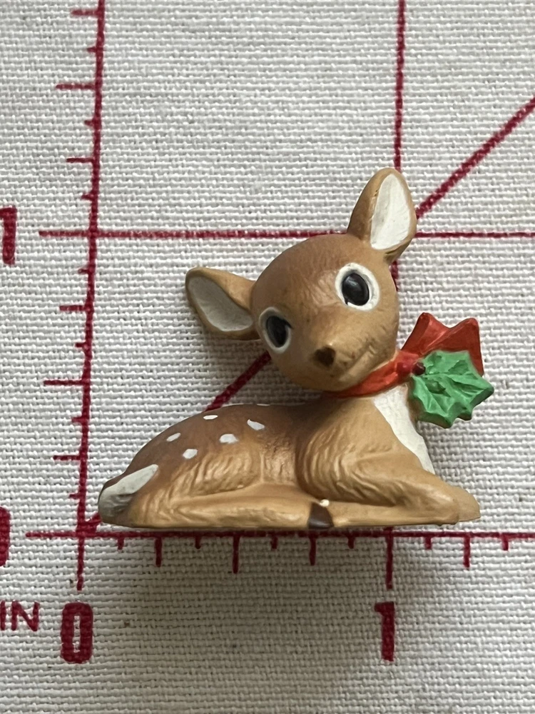 Vintage 1987 Hallmark Merry Miniature Mini featuring a FAWN LYING DOWN with a red bow and green holly around it's neck . He is approximately 1inch high and 1 inch wide. The gold sticker is intact. Very nice! Nice for a small space display or under a very tiny tree. Part of my mother’s massive Hallmark Miniature collection most purchased from store shelf and never displayed. I will be listing from this collection daily. Thank you for checking it out! Shipped USPS Ground Advantage and shipping will automatically be be combined when additional items are placed in your cart.