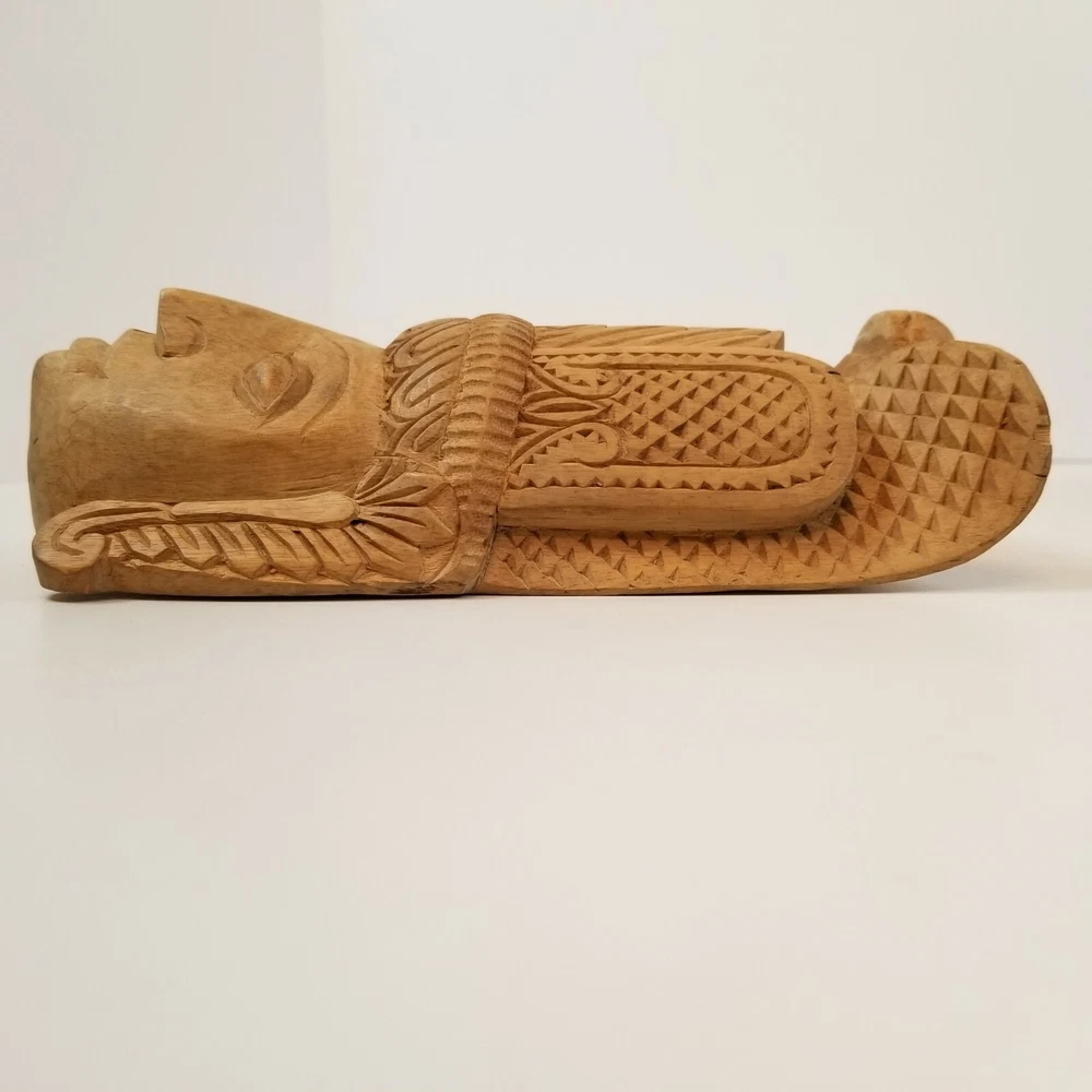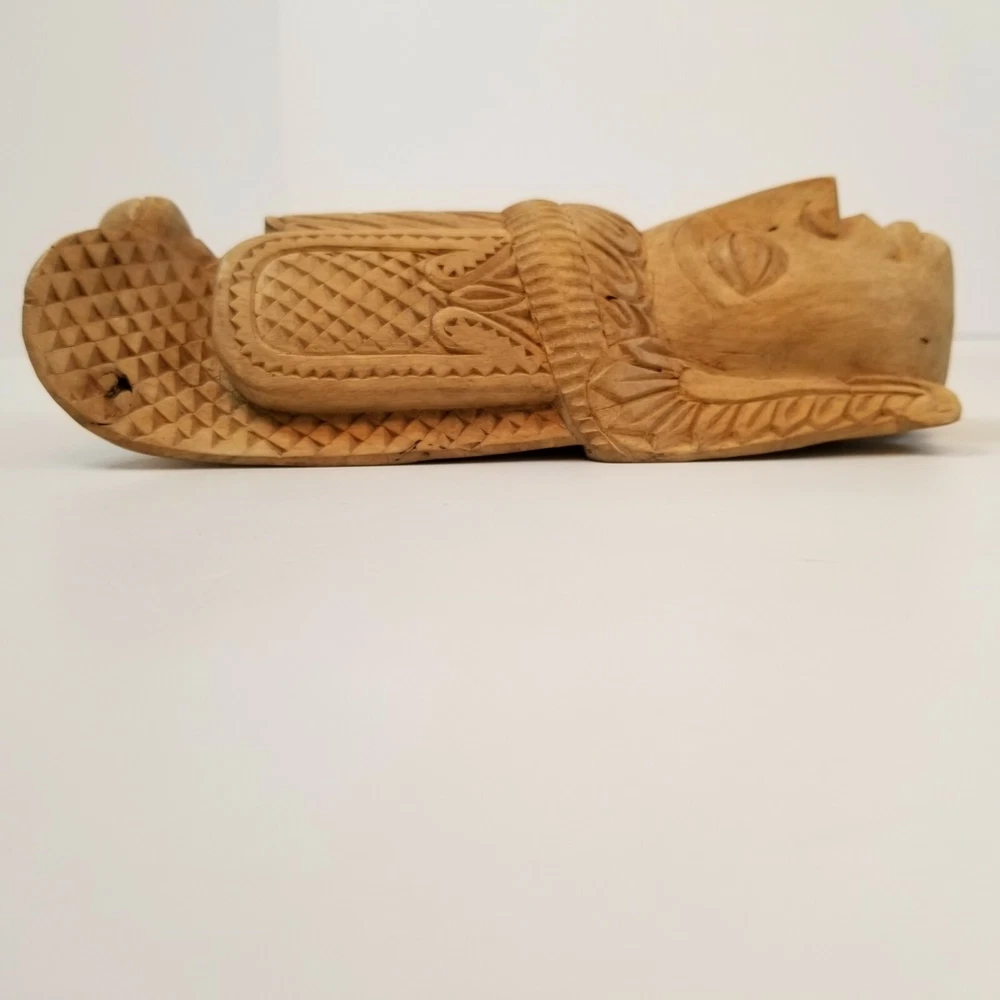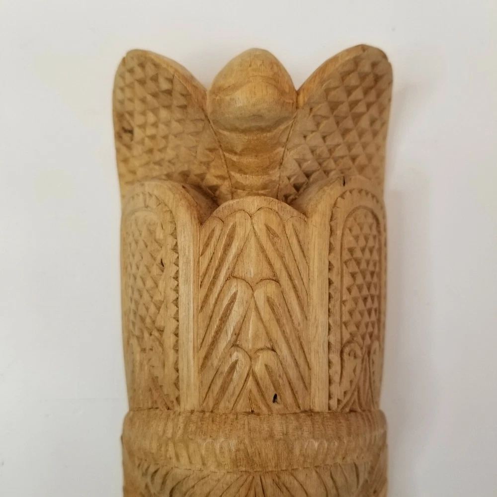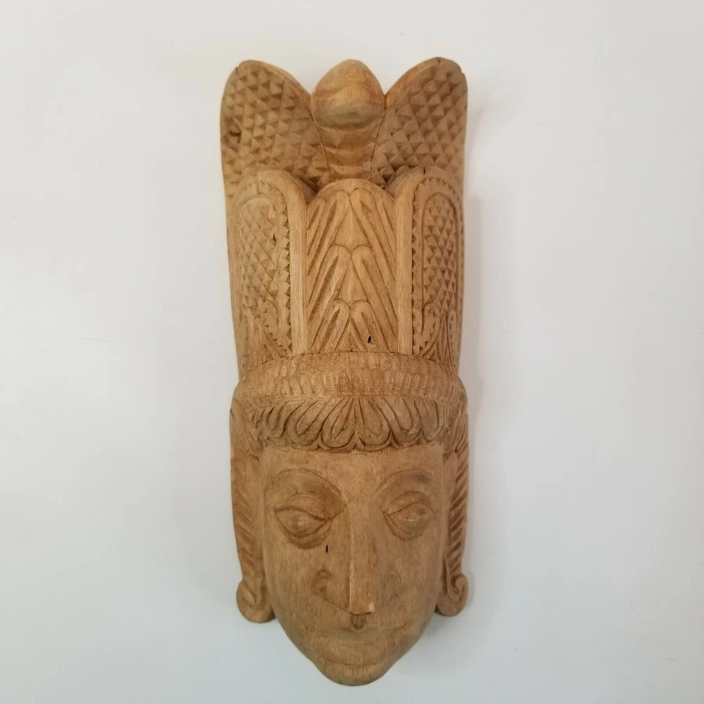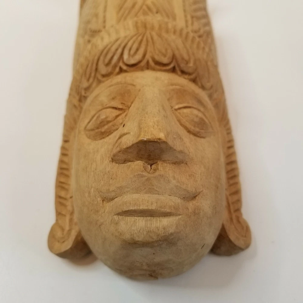 Vintage Hand Carved Wooden Mask Aztek Tribal Ethnic Primitive Wall Art Hanging in good pre-owned condition. Measures 8 1/4" h x 3 5/8" w x 2 1/2" deep All descriptions are only our opinion. Please use the photos to finalize your decision and contact us with any questions. If you should have any problem with an item you receive, please contact us before leaving feedback so we can resolve your issue, as we absolutely stand behind what we sell. We do offer combined shipping for multiple purchases, when possible. All overpaid shipping costs will be refunded at the time of shipping. Check back often and be sure to follow to stay updated on new items that are added each day. Thanks for looking and have a great day!