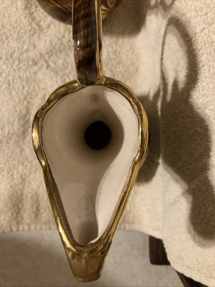 This vintage vase/pitcher is a unique addition to any collection. Hand painted by Hubert Bequet, this piece showcases exquisite craftsmanship. The porcelain and ceramic materials used in its construction give it a high-quality feel. Its colorful finish adds a touch of whimsy to any decor. This item was manufactured in Belgium between 1920-1949 and features a beautiful multicolor design. The vase/pitcher is in great shape and is perfect for display or use. It would make a wonderful gift for any collector or admirer of fine art.