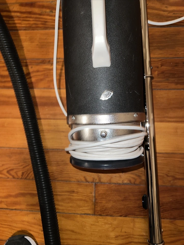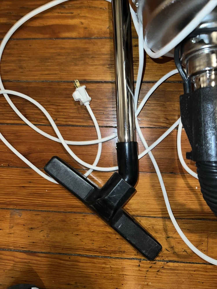 this by is Preowned and has normal storage usage and wear to it and does not have any vacuum bags. the plastic attachment has a crack on it Please look at the pictures to see what all come with vacuum and email if you have any questions