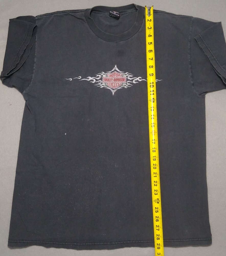 Vintage Harley Davidson T Shirt Mens XL Black Las Vegas Nevada Motorcycles Biker Insure proper fit by laying out a shirt that fits, take measurements and compare to pictures. Has some small white spots on front , maybe paint spots, (2nd picture) small hole in collar (3rd picture) Chest 45" To combine shipping on more than one item, just hit the request total option in the cart. Take all the risk out of ordering online with FREE RETURNS If you find a flaw that we failed to catch or just don't like for some reason, just contact us for return. Returns must be in same size box to avoid overcharges. Thank you for your interest and time . Shipping is Monday - Friday (non-holiday) and ships within 1 day.