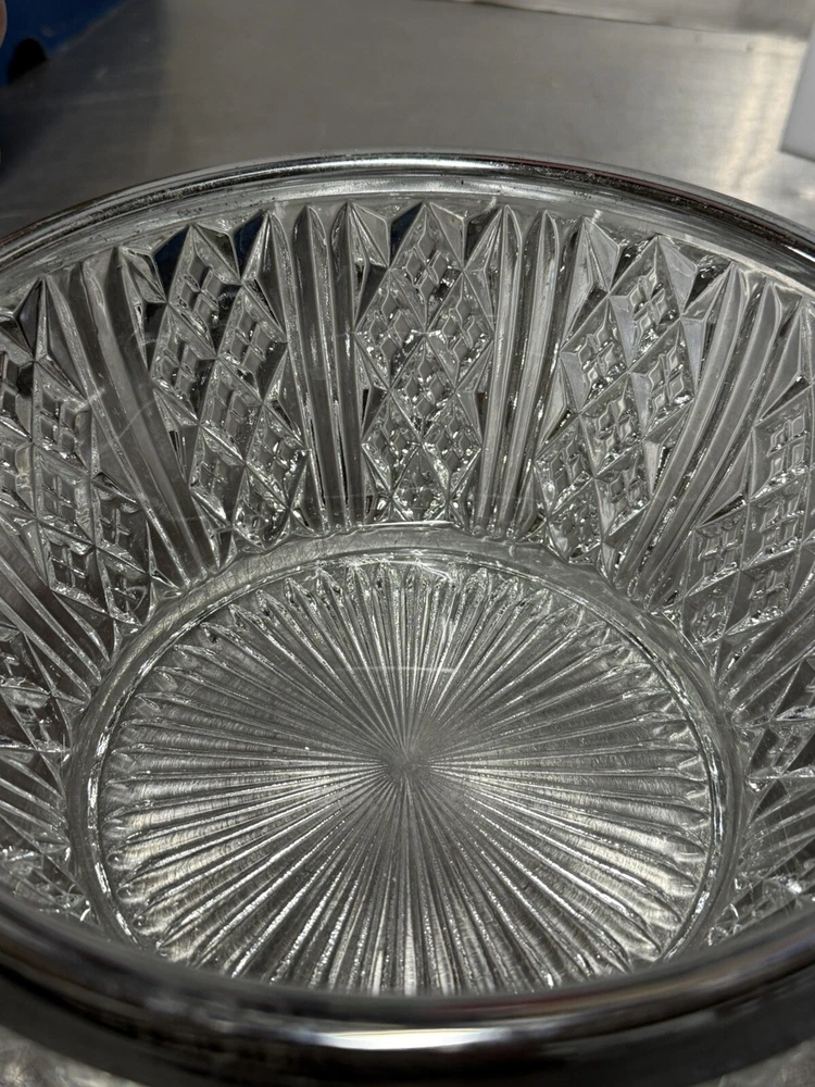 Vintage Heavy Crystal Serving Bowl Salad Bowl With Silver rim England 8x4” New open box