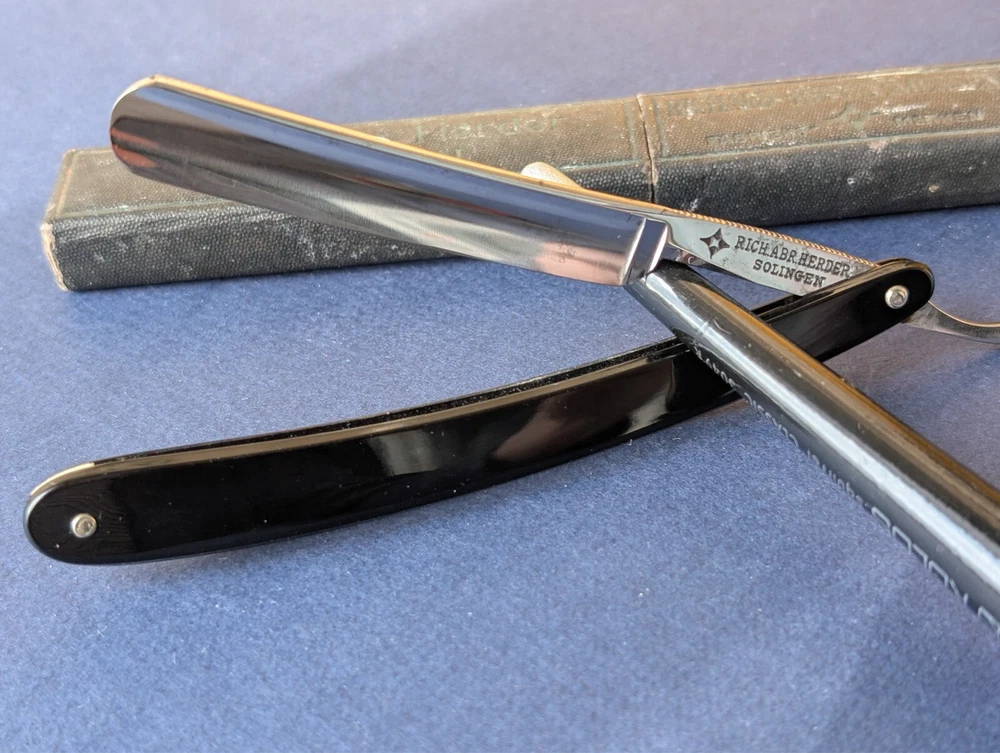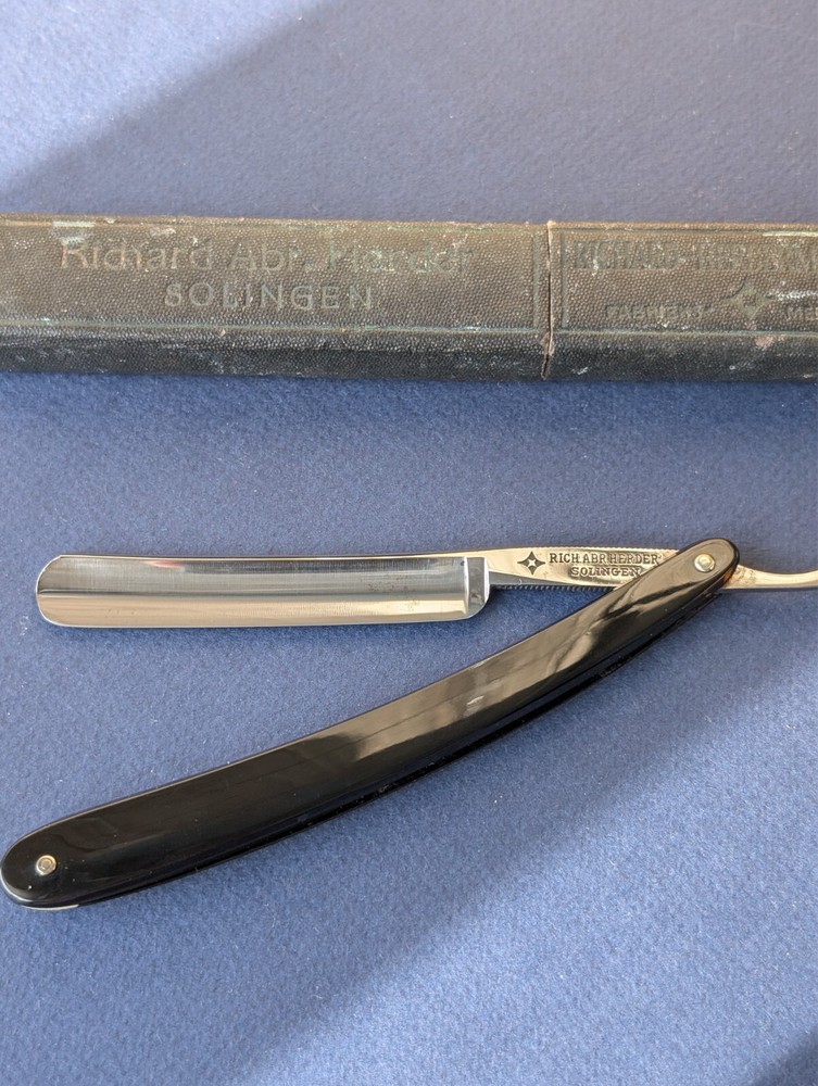 Beautiful straight razor Rich.Abr. Herder. Solingen 7/16", made in Germany. Condition in the photo, w/case, shave ready or colletion. There are many different razors, please see my other lots. ====================================================================================================== Average delivery time 20-25 work day. Delivery of parcels to European countries does not include VAT(Value Added Tax) in the price, taxes are paid by the buyer when receiving the parcel in his country, according to customs regulations. Please check the tax amount before ordering.