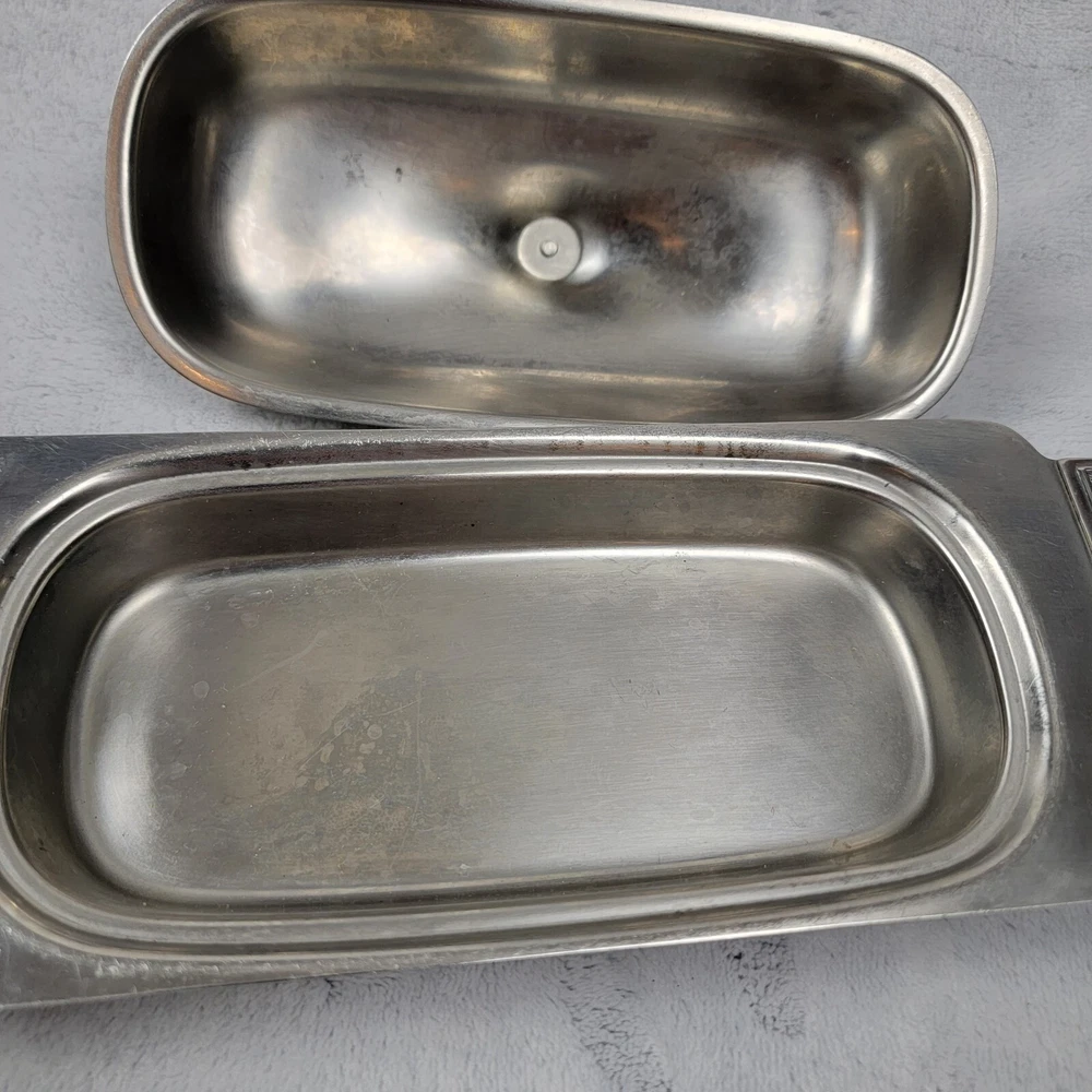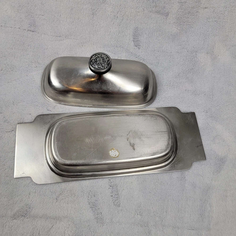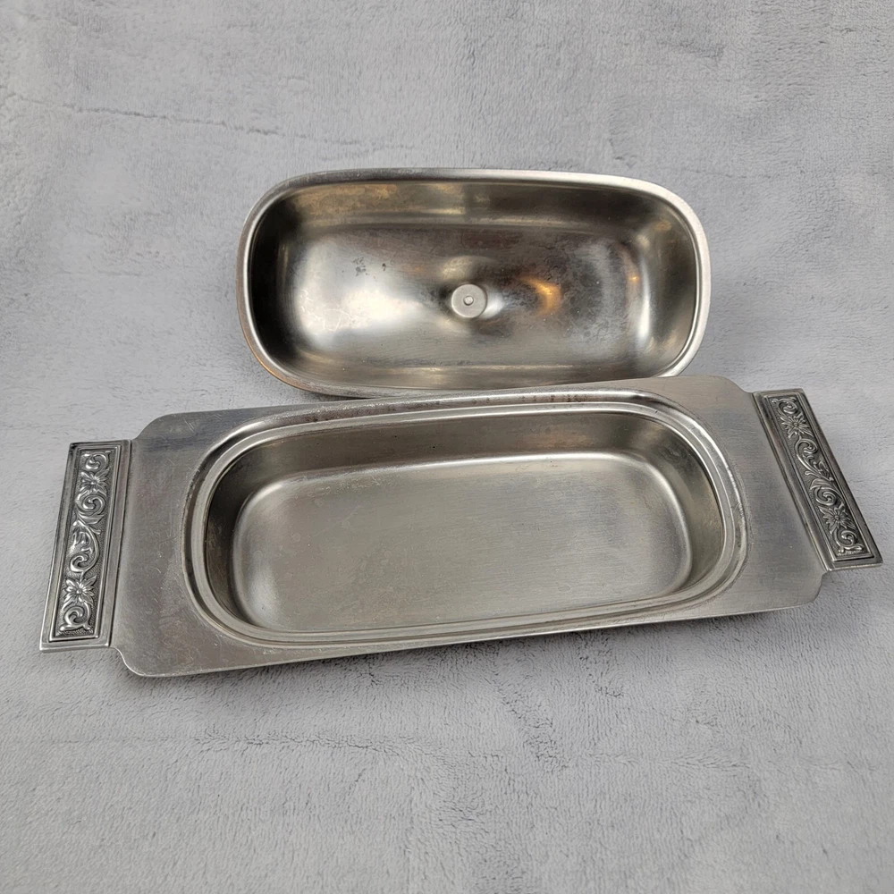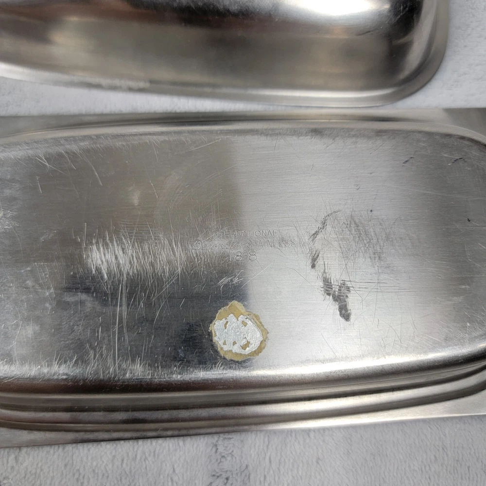 International Decorator 18-8 Stainless Set Vintage Covered Butter Dish Relish. Some scuffs but otherwise in great Shape Please see photos for exact item you will purchase Thanks for looking Fast Shipping