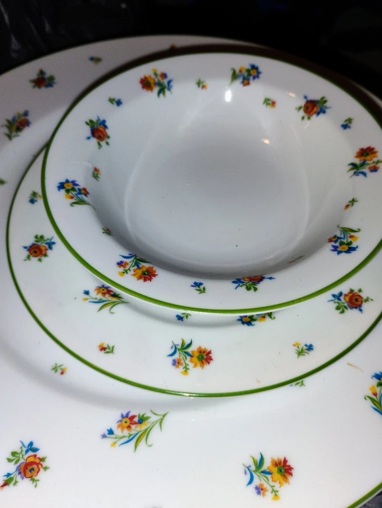 This vintage collector plate set from International China features the Fleurette 470 pattern, with intricate floral designs on porcelain and bone china. The art glass production style and fused glass production technique make this set a unique addition to any collection. The plates originate from early 20th century China and were manufactured between 1920-1929. They showcase a culture of American origin and are perfect for collectors of decorative plates. Add this beautiful set to your collection today!