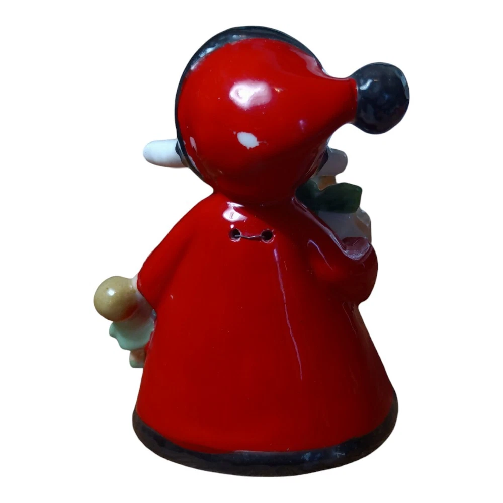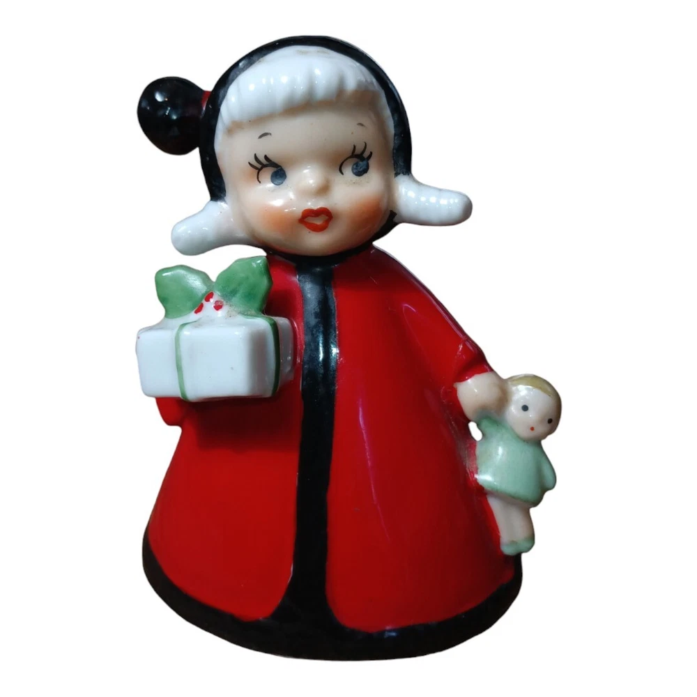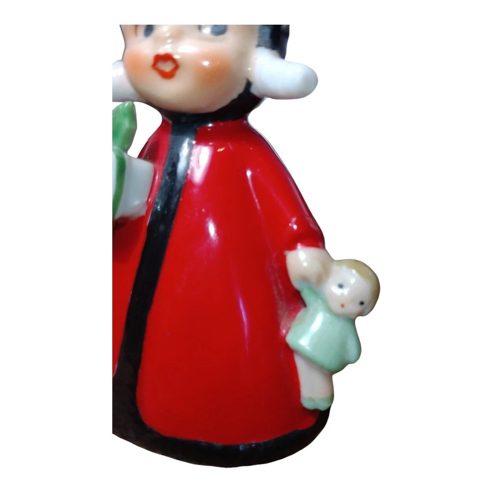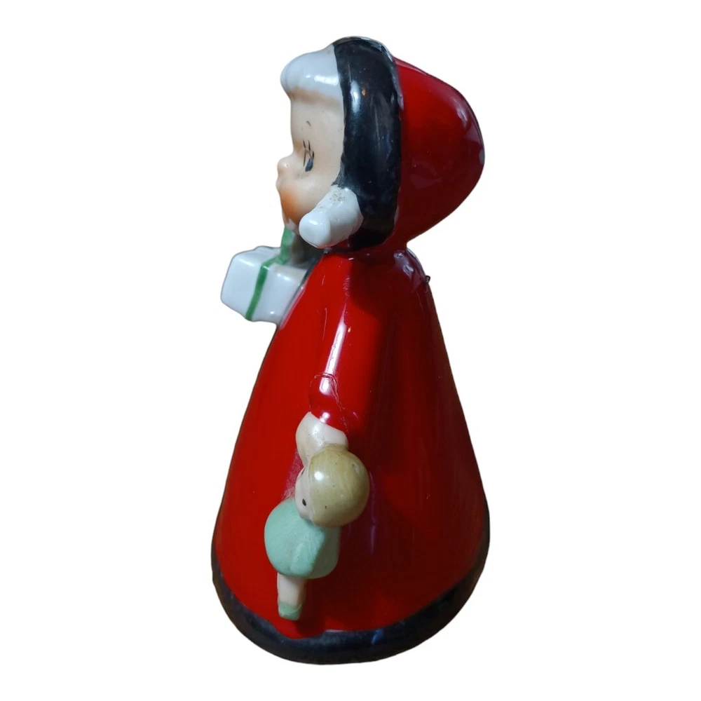 Vintage Japan Hand Painted Porcelain Figural Bell Girl w/ Gifts - Repaired **Small crack repair to one arm. See Photos. Please refer to photos: Accurate details and condition are clearly depicted. Measures Approximately 5" H No Chips or Excessive Wear Very Good Pre-Owned Condition