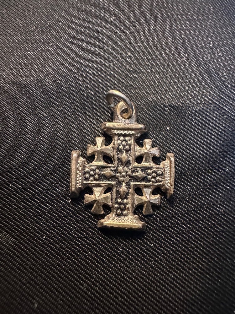 The Vintage Jerusalem Cross Pendant is a beautifully crafted piece that represents the Crusader Five-Fold Cross, symbolizing Christianity and faith. This intricate pendant would make a meaningful and collectible item for any Christian looking to add a piece of religious history to their collection or for personal wearing. Its ornate design reflects the significance of the cross in Christian tradition, making it a unique and special piece for those who appreciate religious artifacts.