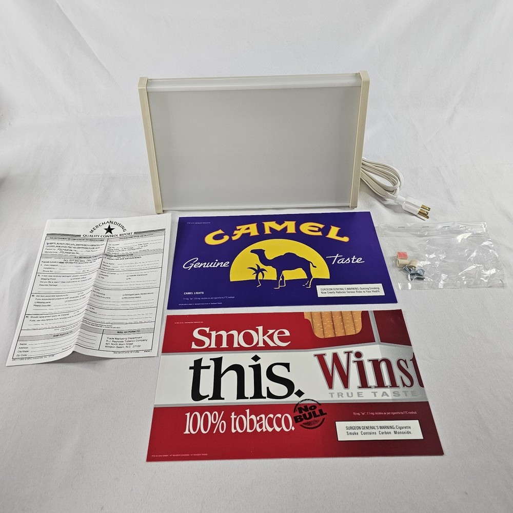 Vintage Joe Camel & Winston 1997 Lighted Advertising Sign 14.5"×8.5" NEW. This Was Given To Me Along With A Bunch Of Other Camel/RJ Reynolds Items, From A Family Friend Who Was A Rep For Them For Many Years In The Early 1980s Through The Early 2000s. I Have Many Other Camel/RJ Reynolds Items Listed, And Will Be Listing Many More If You're Interested. Please Zoom In And Check All Pictures Closely For A More Detailed Visual Description And Measurements. Ships Out Free Within One Business Day.