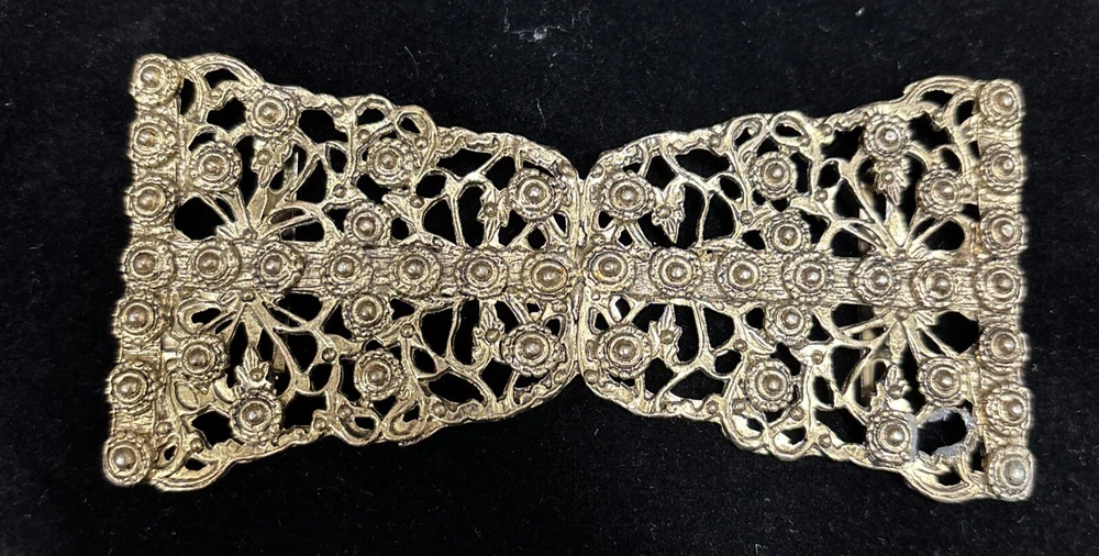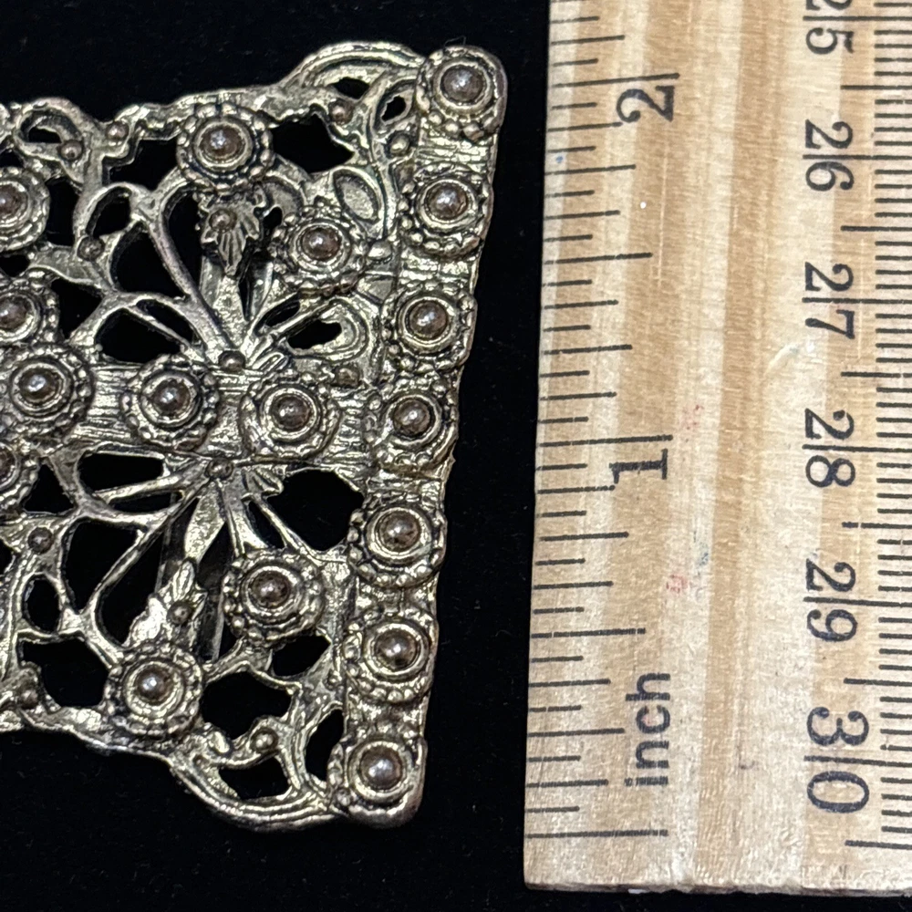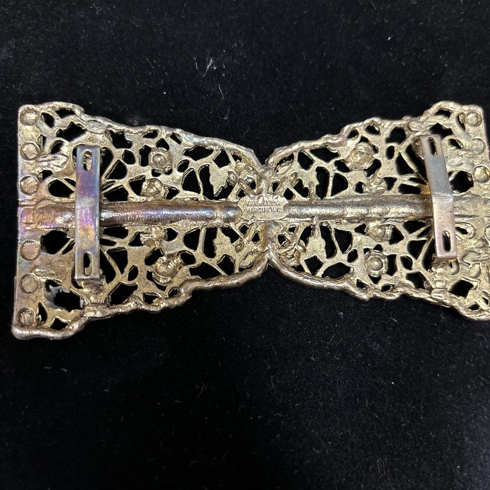 This vintage Kandell Marcus NY belt buckle is a stunning addition to any wardrobe. Measuring 4.25 inches in diameter, it is a comfortable fit for any belt. The copper tone material gives it a unique and timeless look that is sure to turn heads. The brand is known for its high-quality clothing and this belt buckle is no exception. The Kendall Marcus NY label is synonymous with style and sophistication. This item is perfect for anyone looking to add some vintage flair to their outfit.