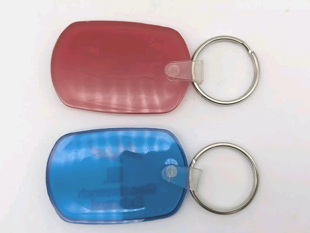 Showcase your love for automobiles with this vintage lot of 2 blue and red keyrings featuring the iconic GM logo. These original keyrings are a must-have for any automobile enthusiast and make for a perfect addition to your collection. Add a touch of nostalgia to your everyday life with these keyrings.