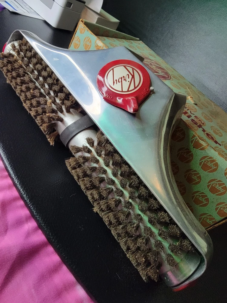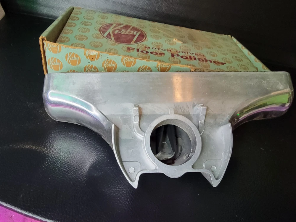 This vintage Kirby motor-driven floor polisher head is a must-have for collectors and enthusiasts of kitchen and home appliances. Made in the United States and still in its original box with a belt included, this attachment is designed for use with Kirby vacuum cleaners and is perfect for those looking to add to their collection of major appliances. The polisher head is in excellent condition and has been well-maintained over the years. With its brand, type, and model all clearly labeled, this attachment is a rare find and sure to be a valuable addition to any collection. Don't miss out on the opportunity to own this unique piece of kitchen and home history.