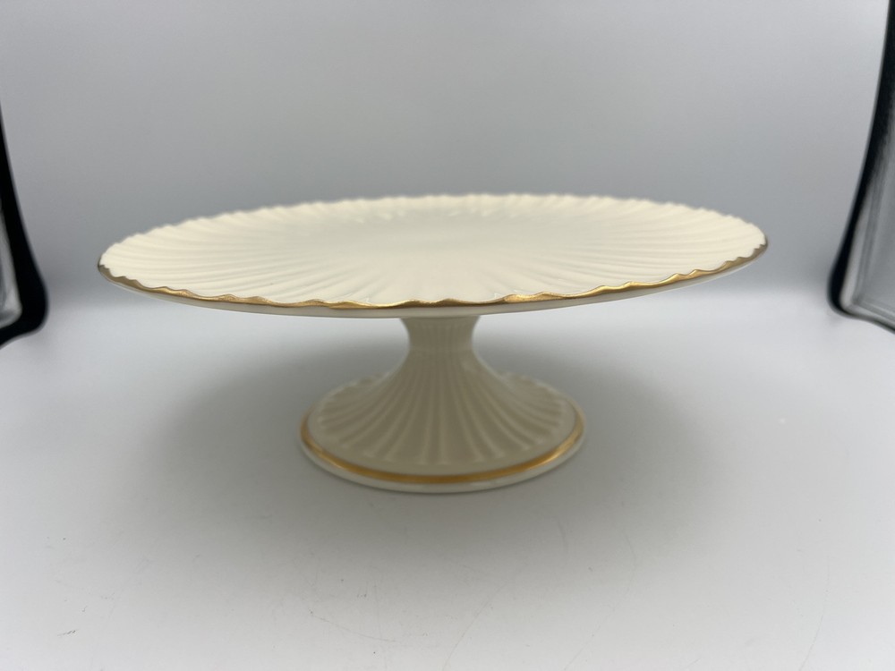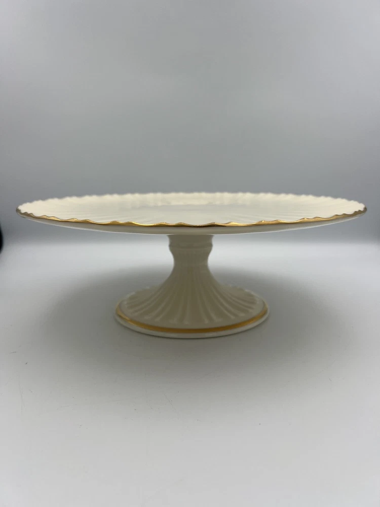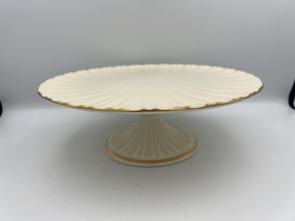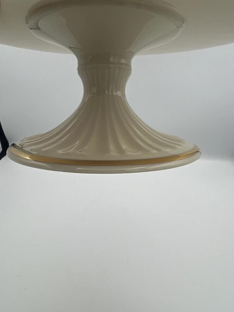 Vintage LENOX Fluted Pedestal Footed Cake Plate Stand 24K Gold Trim -No Original Box Important Details: Measurements : Please refer to the photos for exact dimensions. Condition : Like new, no original box. Buyer Responsibilities : Returns are accepted within 14 days, provided the item is returned in the exact condition it was sent. Return shipping and a 20% restocking fee will apply to all returns. Questions? Feel free to message us through eBay or contact the seller directly for more information. We're happy to assist!