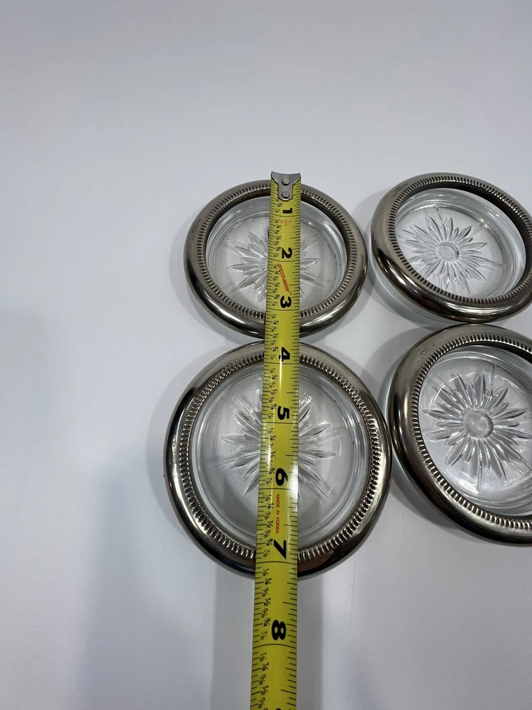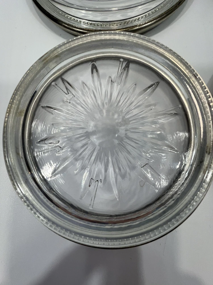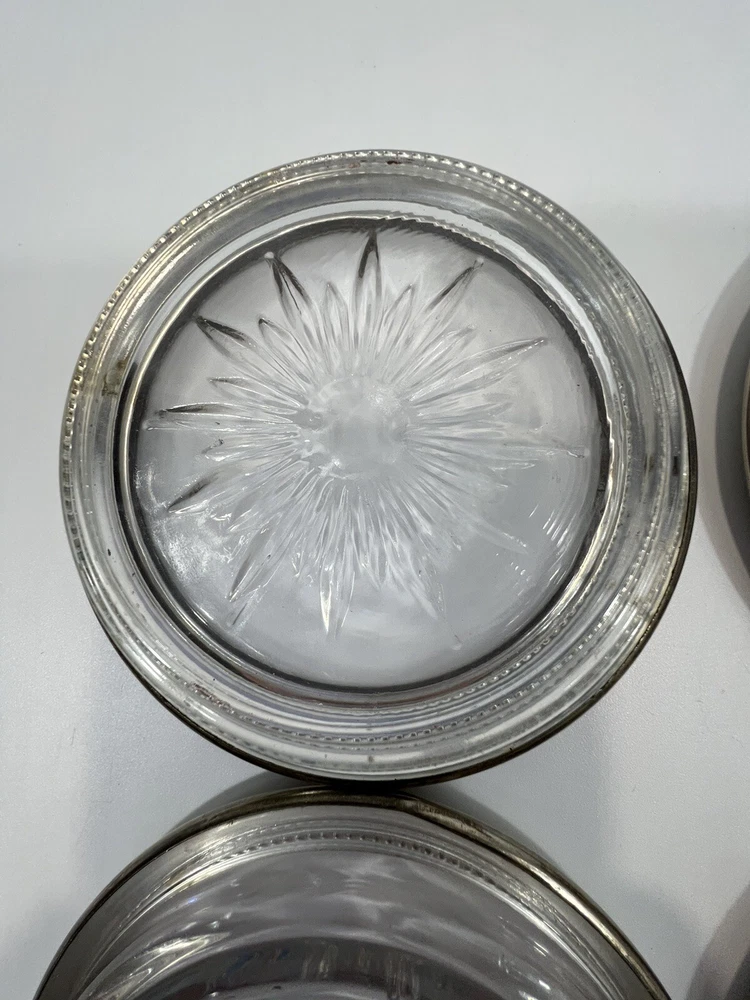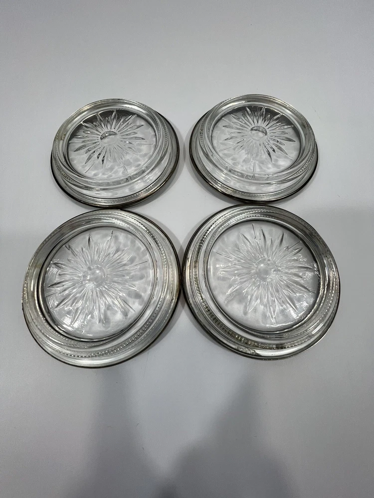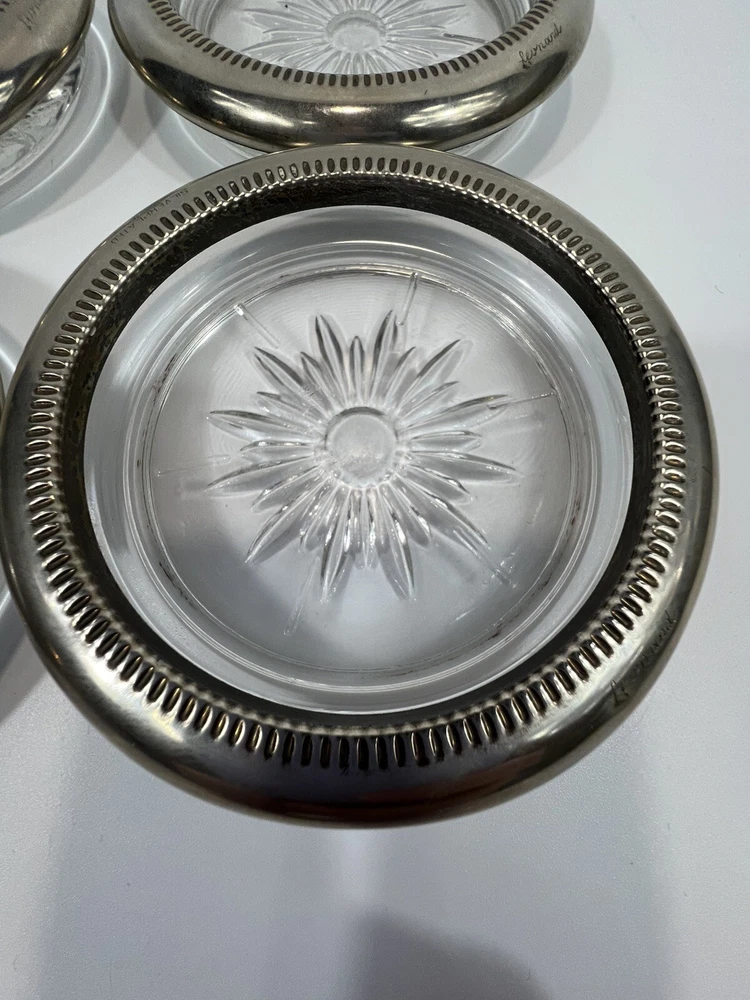 HomeVintage Leonard Italy 4 Piece Coaster Ashtray Set Genuine Crystal & Silver Plate