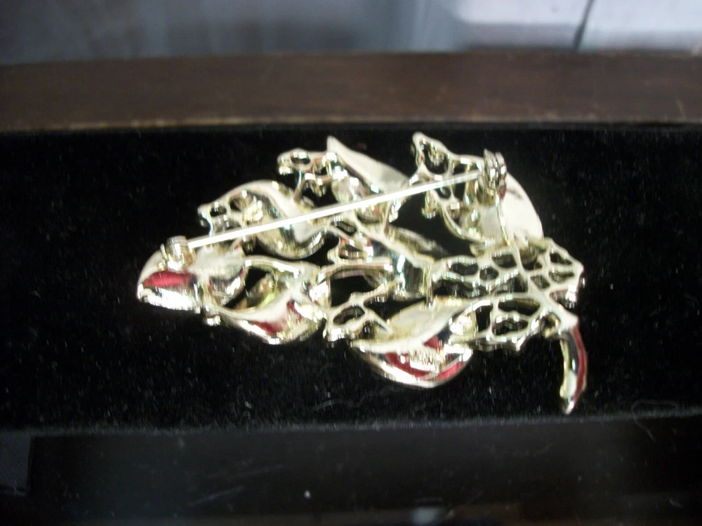 Original/Reproduction:OriginalJewelry Department:FashionMetal:UnknownMaterial:MetalAntique:NoColor:GoldClosure:Safety C ClaspVintage:YesType:BroochBrand:LisnerShape:LeafSigned:YesCountry/Region of Manufacture:United StatesTheme:Flowers & Plants
