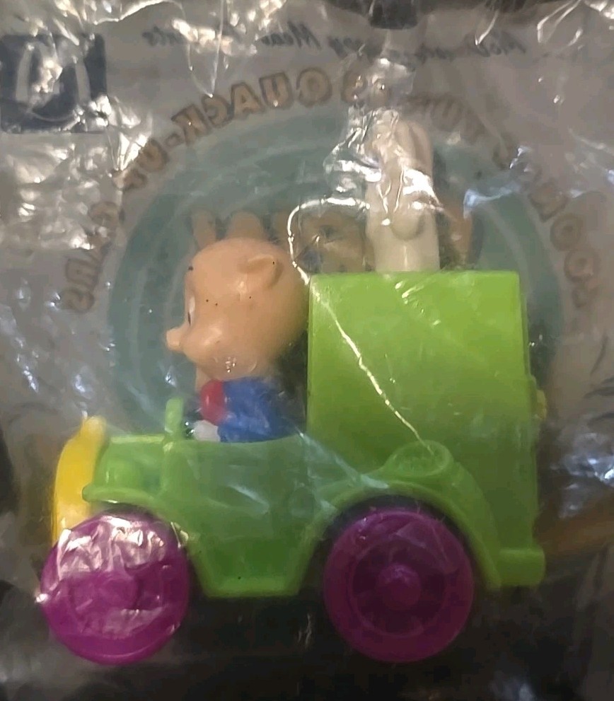 New & Sealed Vintage McDonald's Happy Meal toy from 1992 features the Porky Ghost Catcher Pig as a cake topper. The green truck is a cute and collectible piece that appeals to a wide range of age groups from 3 years and up. Made in China, this officially licensed McDonald's product is a nostalgic item for fans of Looney Tunes and fast food memorabilia. Perfect for adding a touch of charm to any toy collection or McDonald's fan's display.