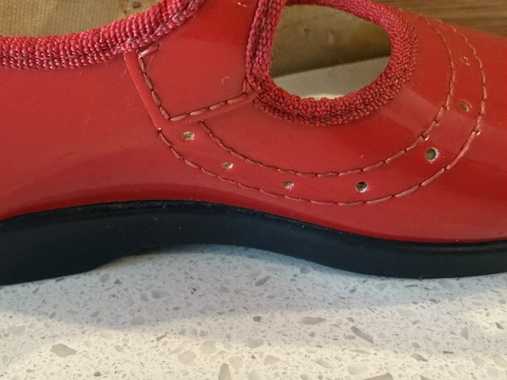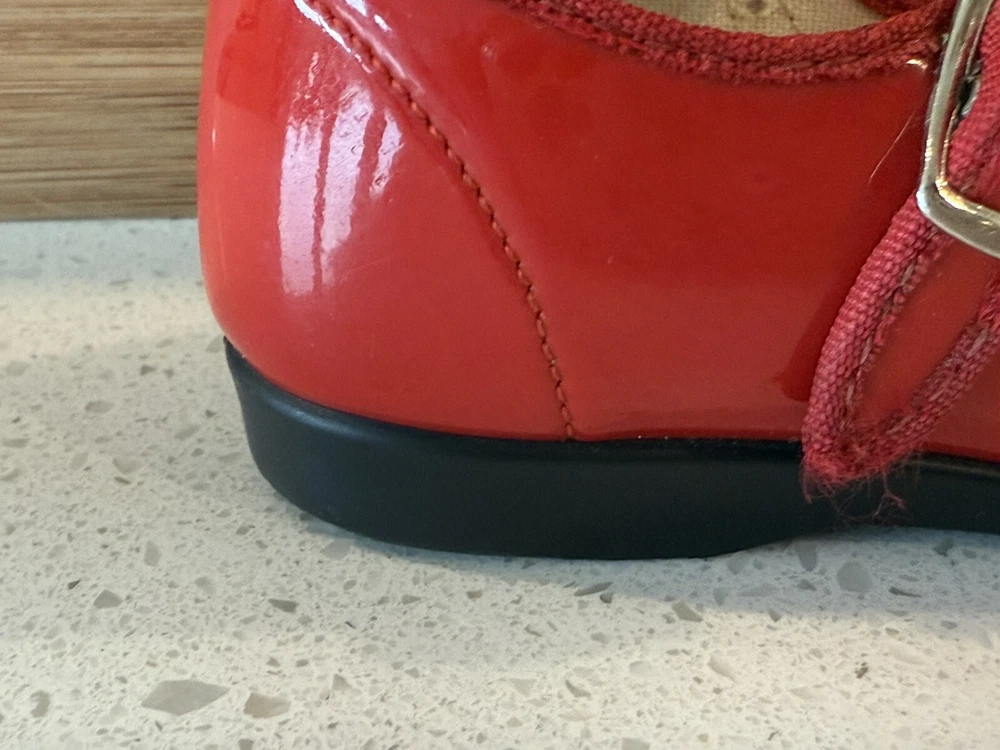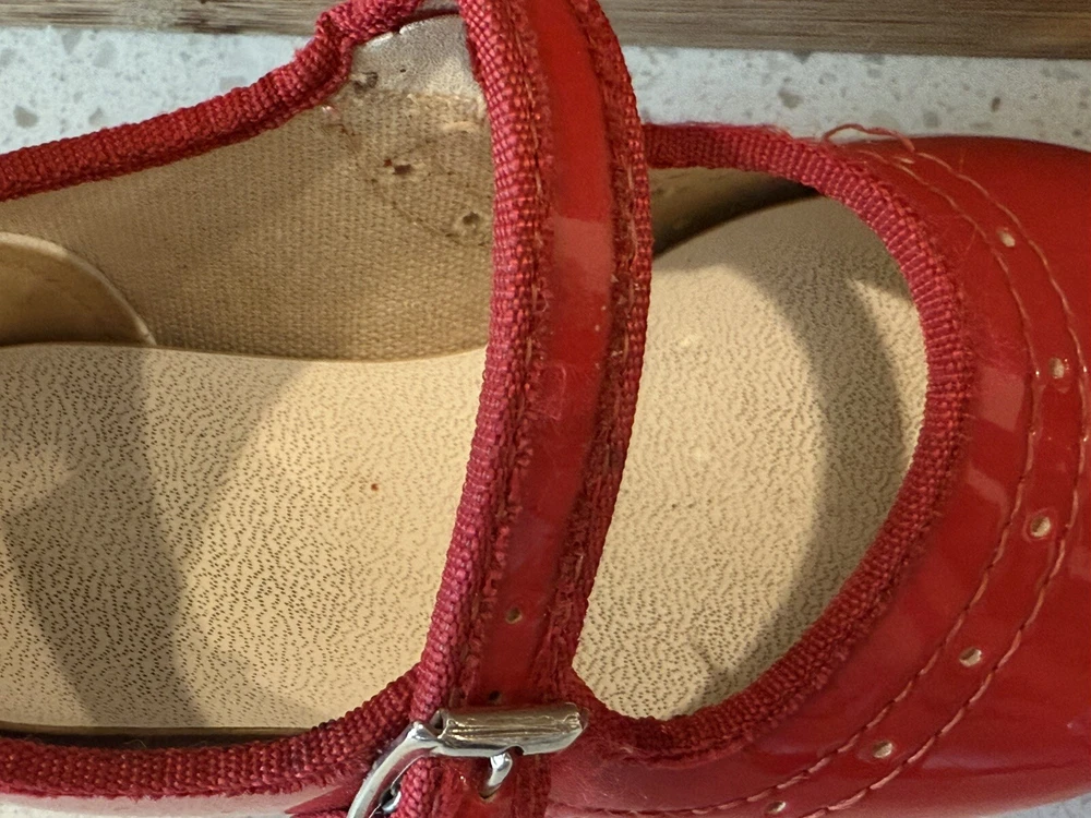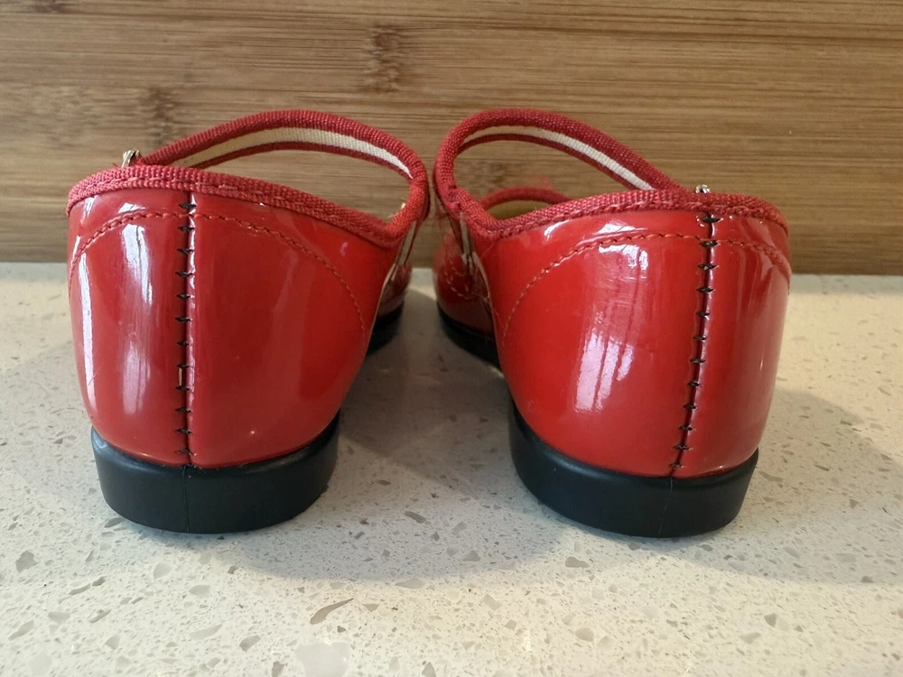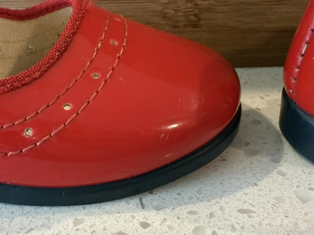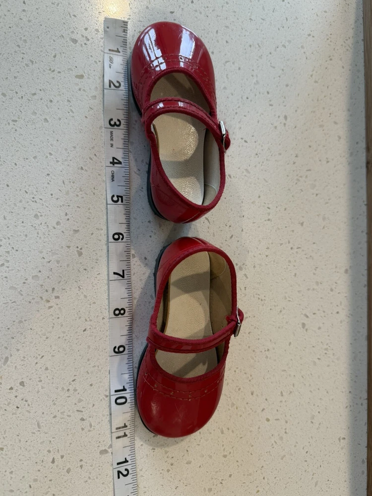 These vintage Mary Jane baby and toddler girl shoes are perfect for special occasions. They have a beautiful red patent finish and are made of faux leather with functioning buckles. The look of these shoes makes them a great addition to any vintage collection. These shoes are an original product and were made in the United States. They are size 4 and have a unique and stylish look that is hard to find in modern footwear. These shoes are a great addition to any vintage clothing, shoes, and accessories collection. From a smoke free home.
