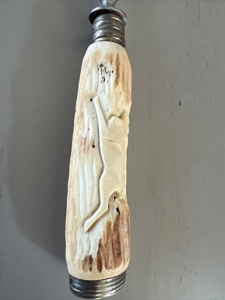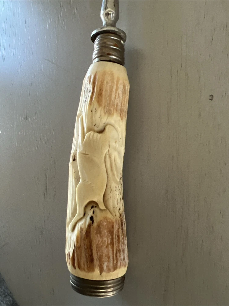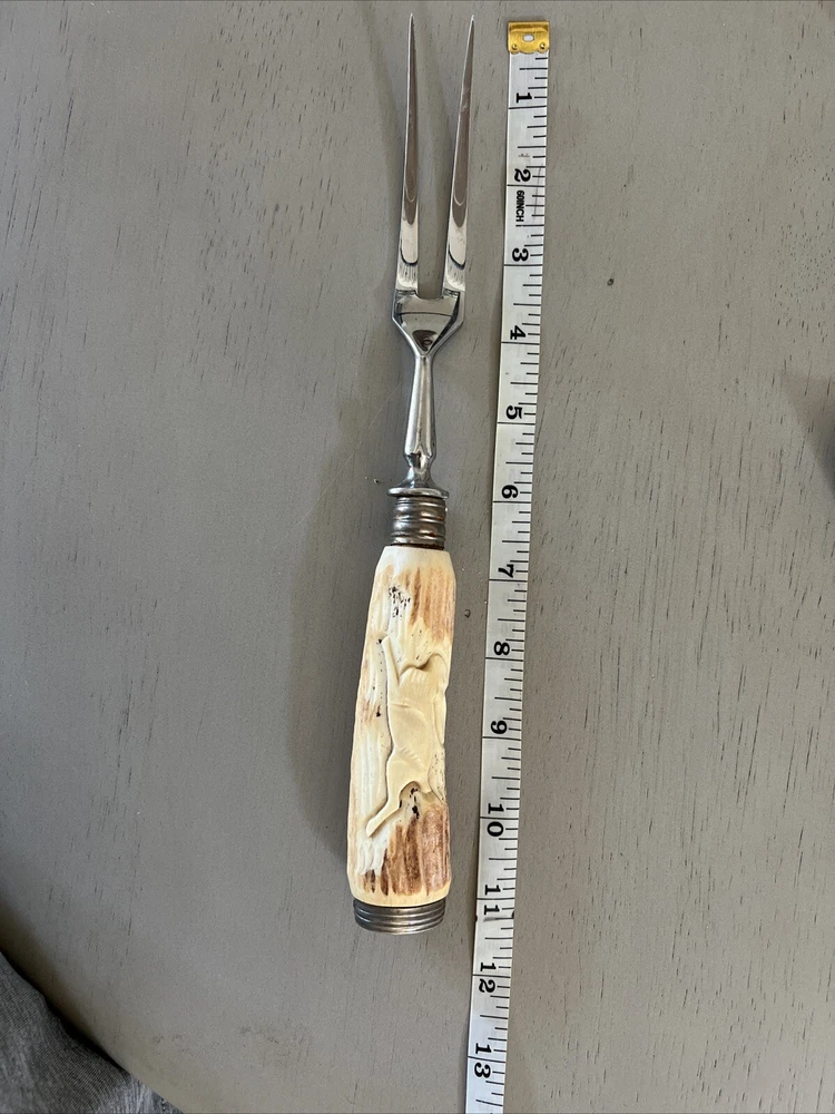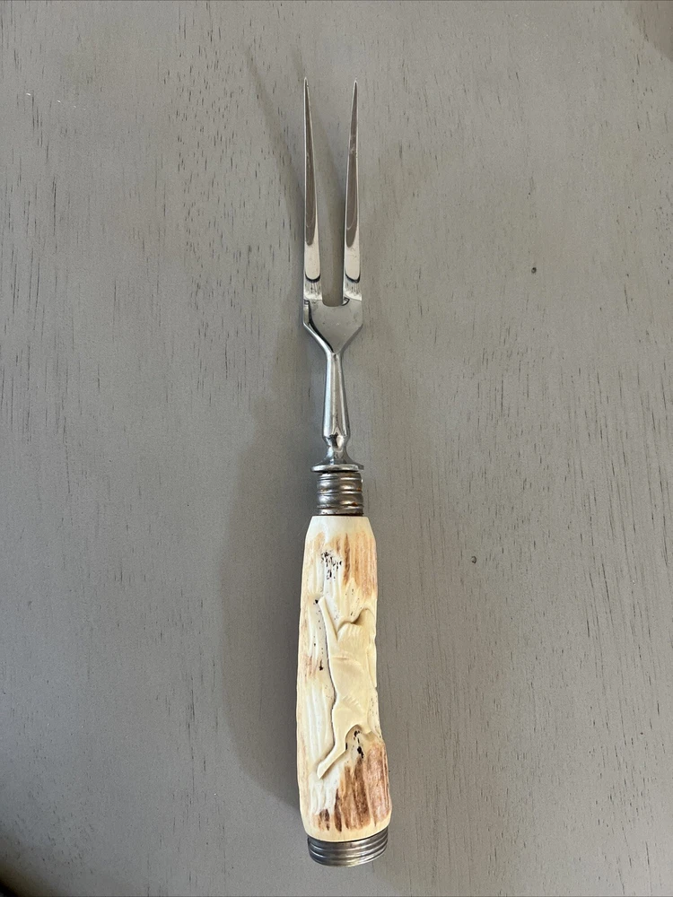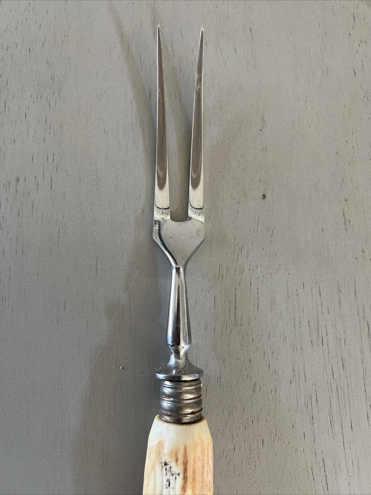 Vintage Meat Carving Serving Fork Antler Handle stainless steel Germany See pictures for condition and size.