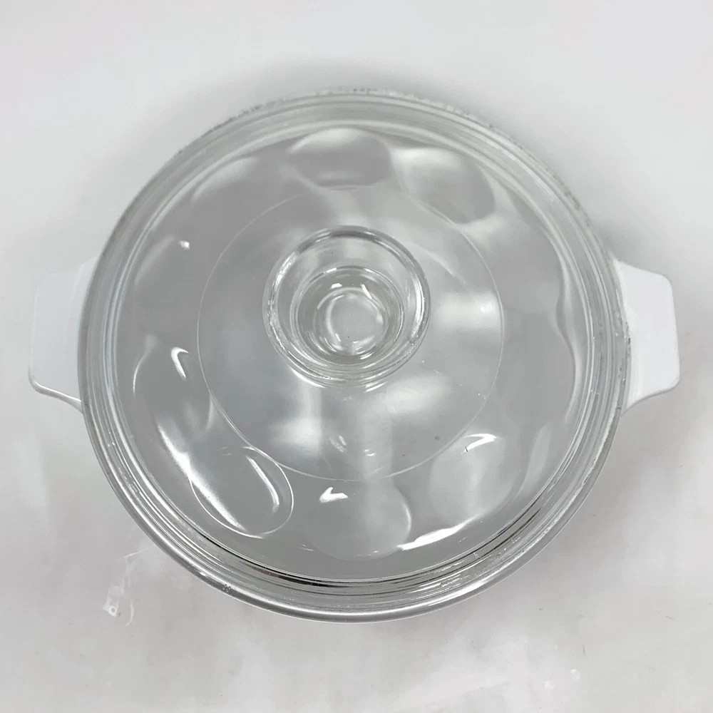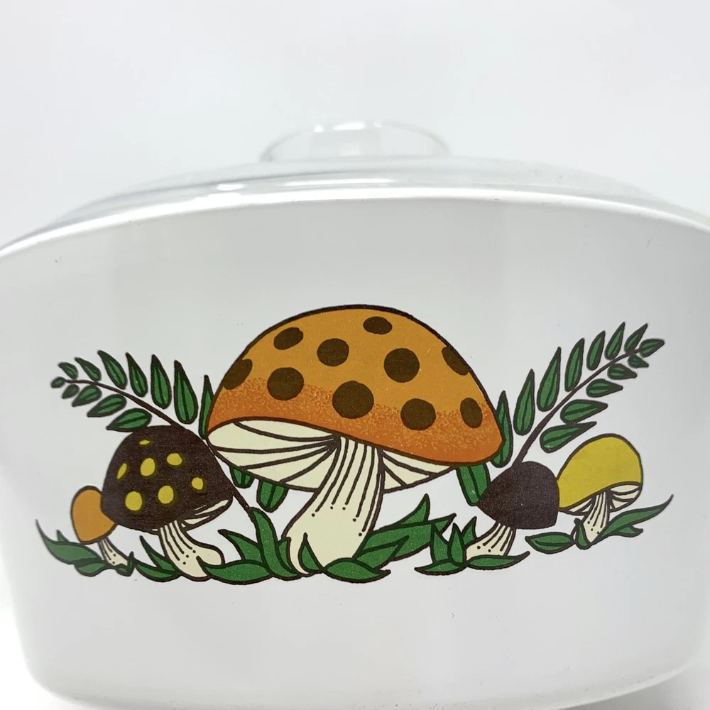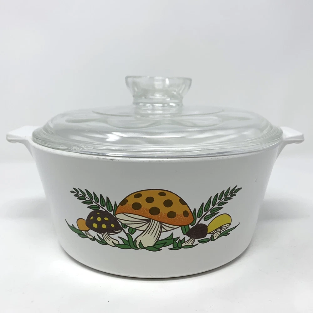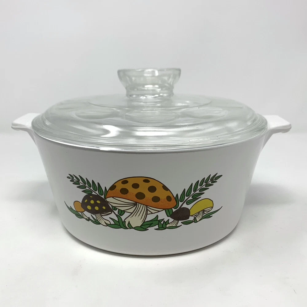 Vintage Merry Mushroom Corning Ware 1.75 Qt Casserole Dish w Dimple Lid *READ* Vintage used condition with lid. Lid has 4 good size chips on the inside rim (see photos). Casserole has some wear/scratches particularly the top rim. Please check photos for details of condition. Please choose economy or priority shipping in the options. Feel free to contact me with any questions, I'm happy to help.