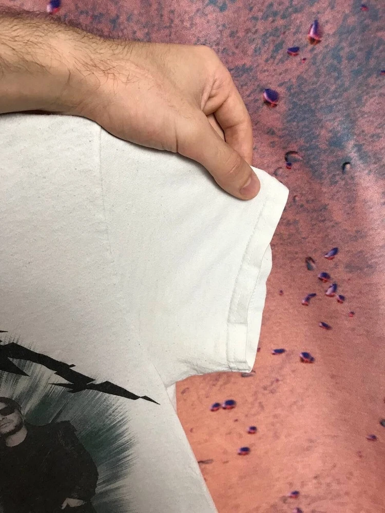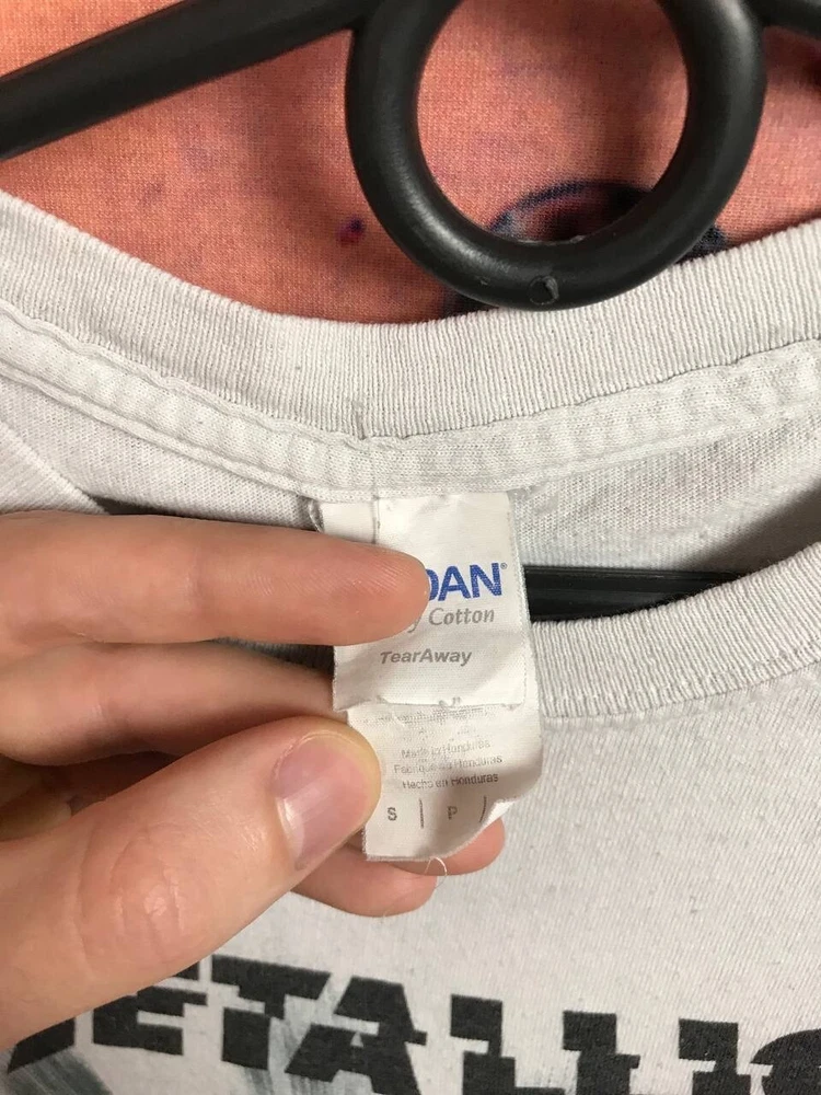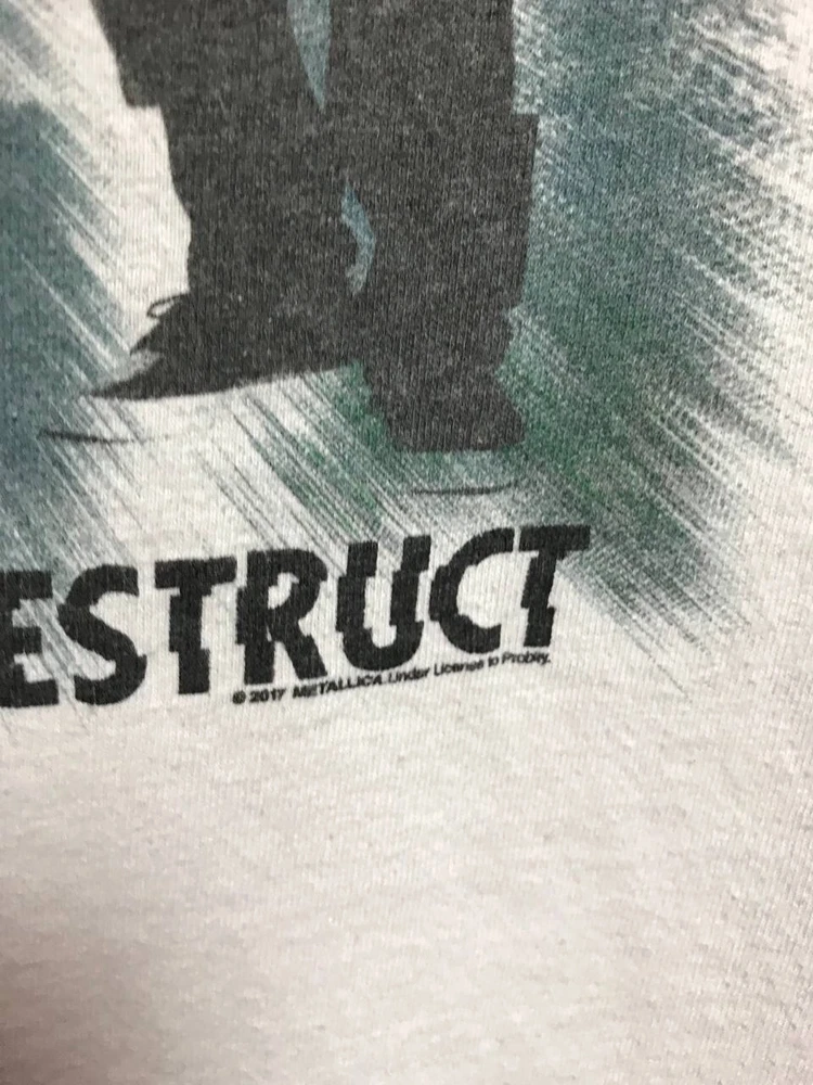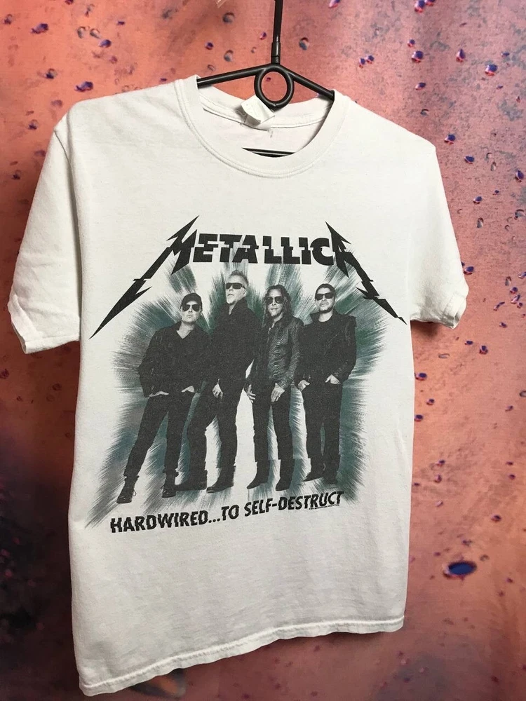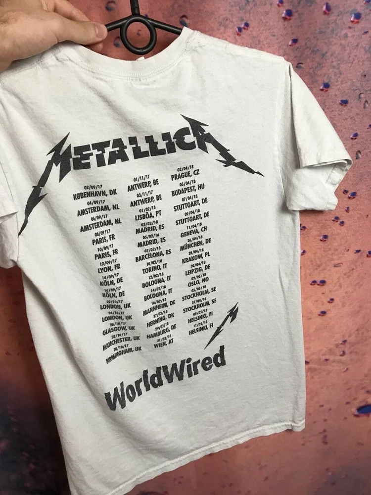 Handmade: No Size: S Type: T-Shirt Character: band, rock Fit: Regular Season: Fall, Spring, Summer, Winter Size Type: Regular Features: All Seasons Material: Cotton Theme: Band, Rock Sleeve Length: Short Sleeve Department: Men Product Line: band Personalize: No Pattern: Solid Brand: Metallica Vintage: No Country/Region of Manufacture: Unknown Fabric Type: Knit Model: band Color: White Accents: Logo Character Family: band Neckline: Crew Neck