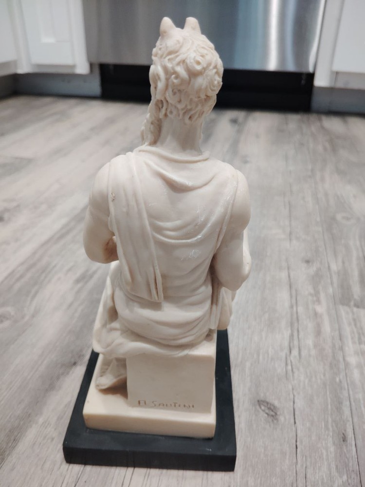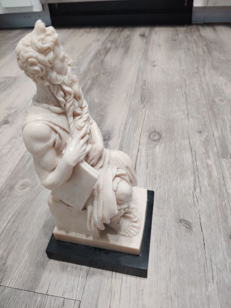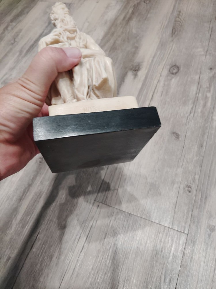 The Vintage Mose di Michelangelo Alabaster Art Sculpture is a beautifully crafted religious statue depicting the iconic figure of Moses. Made in Italy, this sculpture embodies the rich history and artistic heritage of Christianity. The intricate details and expert craftsmanship make it a timeless piece that would be a valuable addition to any art collection or religious space. With its exquisite beauty and spiritual significance, this sculpture is sure to inspire awe and reverence for centuries to come.
