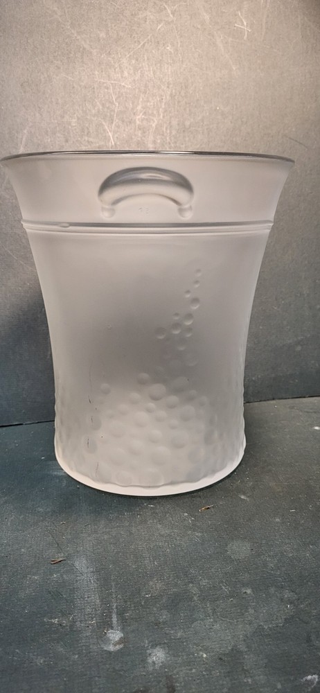Featured is a Vintage Ice, Wine, or Champagne Bucket. It is Frosted Glass on the outside with a Mid Century Modern look. On the bottom it is marked, Made in Italy. Please review the attached pictures before bidding as they are an important part of the description. Thank you.