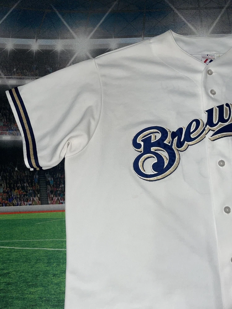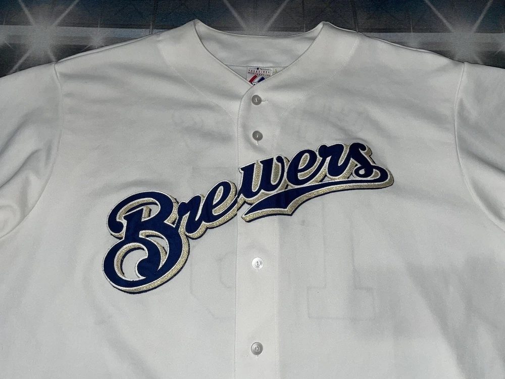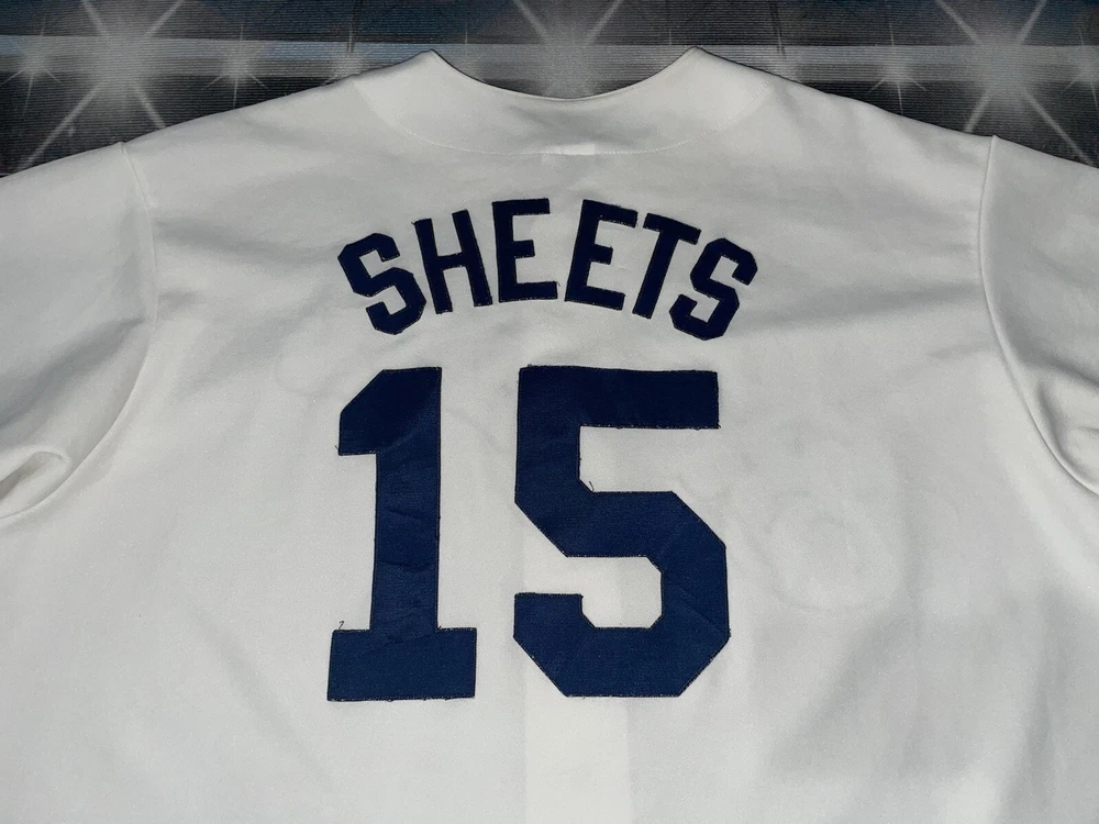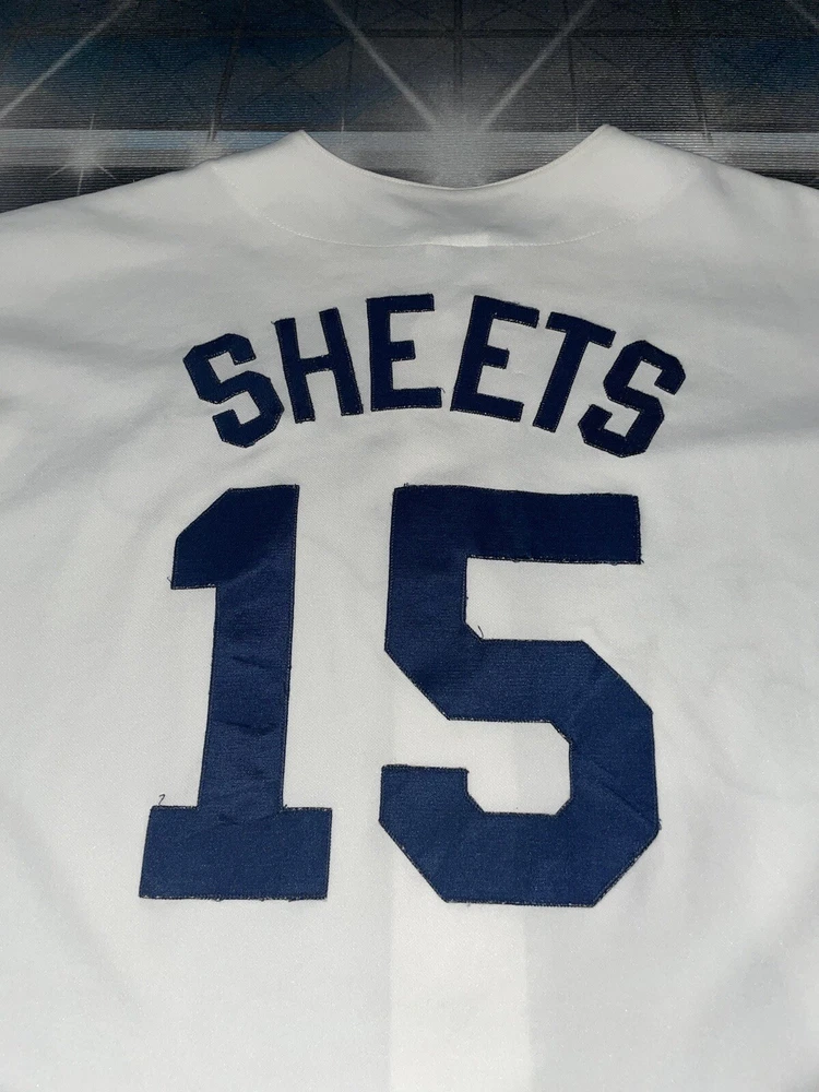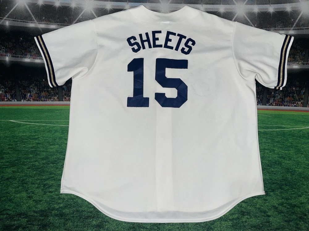 Show your love for the Milwaukee Brewers with this vintage Ben Sheets #15 jersey from Majestic. This officially licensed piece of fan apparel is perfect for any baseball enthusiast, featuring the iconic team colors of white and blue. Made in the United States, this 2XL jersey is stitched with precision and designed for men. Represent your favorite league, the Major League (MLB), during regular season games with this high-quality jersey. It's a must-have for any true fan of the sport. Add this product to your collection of baseball memorabilia and feel proud wearing the majestic design. Note: lite spots