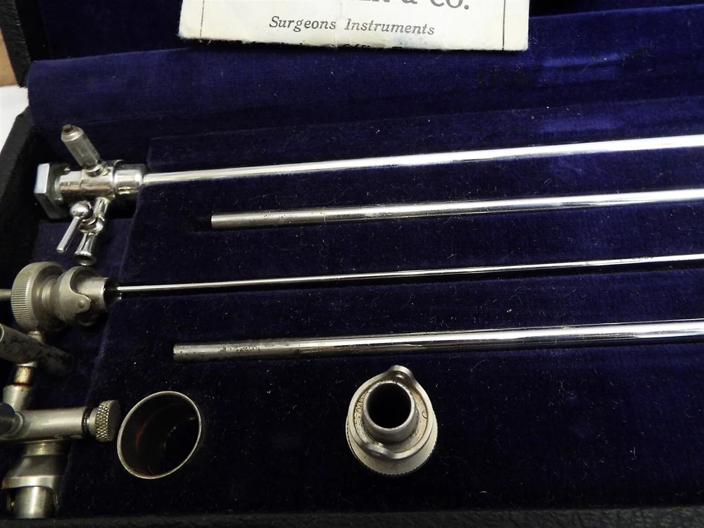 Item Description A vintage resectoscope. Looks to be in overall good condition. Looks to be largely complete. Offered as-is as shown. Comed in the original fitted case. 091324 - CO We sell mostly USED and UNIQUE items. Expect minor evidence of use or imperfections, dings etc. from age. We take many photos of our items to assist with the description. Please use the photos to help judge content and condition. BUY WITH CONFIDENCE : We have sold over 25,000 antiques on-line since 1997 with over 15,000 positive customer feedback. We have been giving quality service to the on-line collector community for over 19 years. Our selling history speaks for itself so that you can buy with confidence. RETURNS : Accepted, full purchase price refunded upon return. Buyer to pay return shipping. Please inspect your item, and notify us of a return within 3 days of receiving it. SHIPPING : 99% of items shipped within three business days. Powered by SixBit's eCommerce Solution