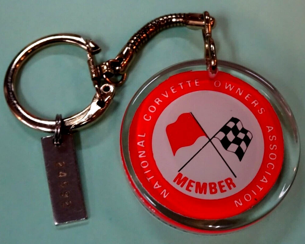 The vintage NCOA National Corvette Owners Association 2-sided keychain featuring National Corvette Owners association is a collectible advertising item for Chevrolet enthusiasts. Made in the United States, this multi-color keychain showcases the theme of automobiles and is an original piece. The keychain includes a numbered tag, adding to its uniqueness and appeal to collectors of Chevrolet memorabilia.