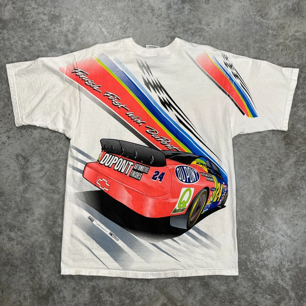 Vintage NASCAR AOP shirt mens Large Jeff Gordan all over print Racing 90s RARE Please check the measurements in the photos in order to gurantee correct fit of the clothing item! the measurements tend to be located at the end of the set of photos! thanks! Our customers are always our first priority here at MJTvintage! if you ever have any concerns please contact us we typically respond very promptly! if there is for any reason your not happy with a purchase don't leave a bad review just contact us and we will be happy to accomodate any issues you had, we believe in going the extra mile for our customers!! lastly, you are always the top priority as the customer and we thank you for your support! Contact us We can be contacted at any time through eBay messages if you have any questions, comments or product requests. We will respond to you within 24 hours and do our best to help you out! We encourage our customers to contact us with any questions or concerns! We'd like to be sure you are completely satisfied with your purchase. Returns For our Buyers Convienience we offer free returns! we do though stringly discourage returns for the item not fitting as we include detailed measurements in our listings so please try to be respectful of that, thanks! Shipping All packages are shipped next day 100% of the time except if purchased on the weekend they go out on monday morning! we pride ourselves on our fast shipping and hold true to it always! Disclaimer most of the items we sell are vintage (20 years & older), therefore some of them might have minor flaws that are caught in the pictures but we try our hardest to describe and picture any flaws! Free eBay listing template designed by © dewiso.com .