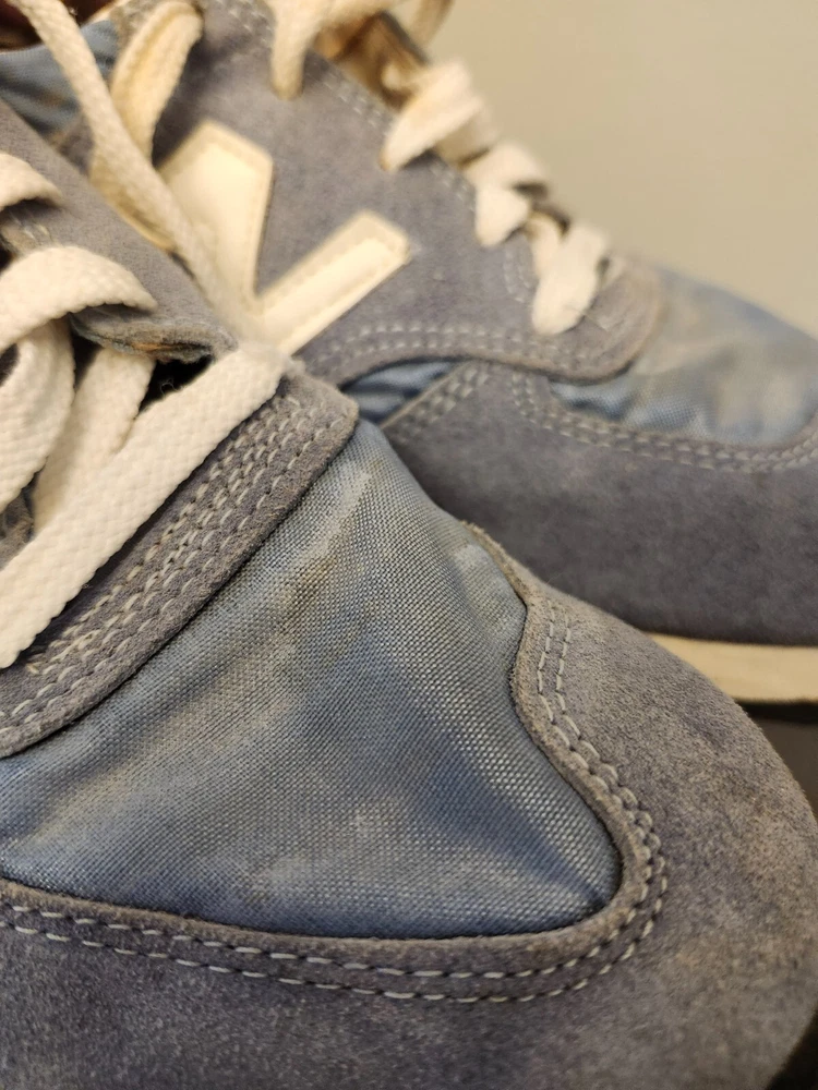 Vintage New Balance Shoes 1980's Running Blue Shoe Athletic Run Collection This vintage pair of New Balance shoes is a must-have for any athletic shoe collector. The blue fabric material and athletic style make it perfect for everyday wear or for hitting the track. Made in the United States in the 1980s, these original shoes are a true gem for any sneaker enthusiast. The brand's iconic running shoe design is sure to turn heads and make a statement. Don't miss out on the chance to add this piece of history to your collection.